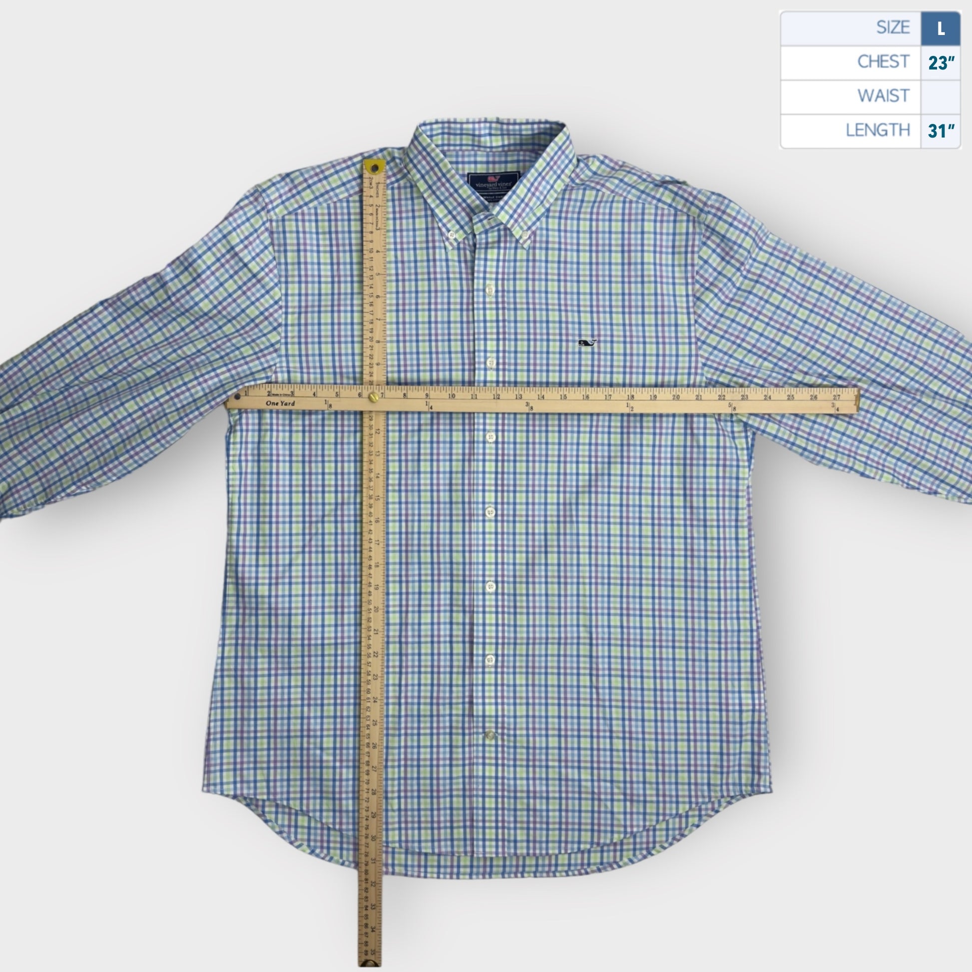 Vineyard Vines Men's Plaid Button-Down Whale Shirt - Size L - Green/Blue/Purple