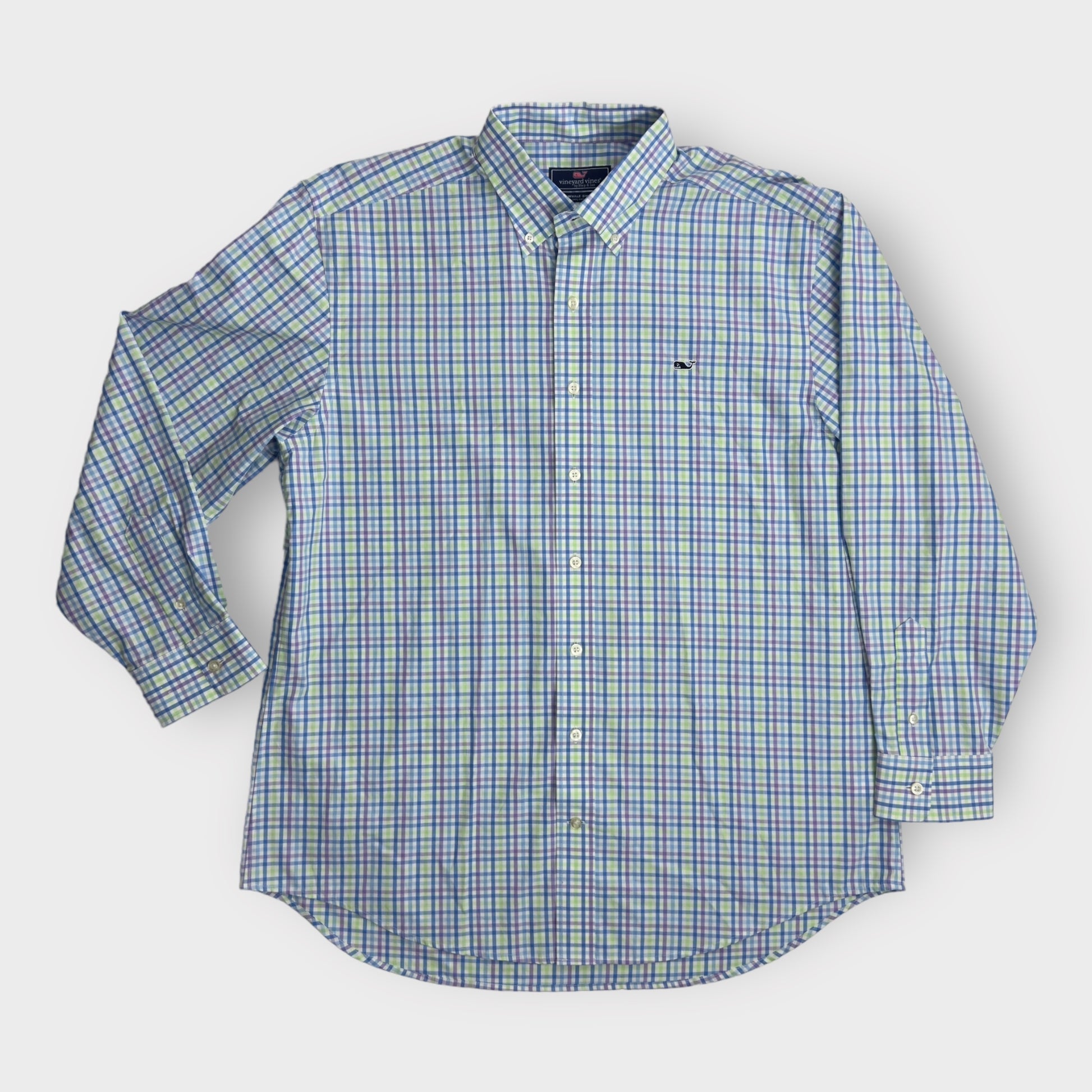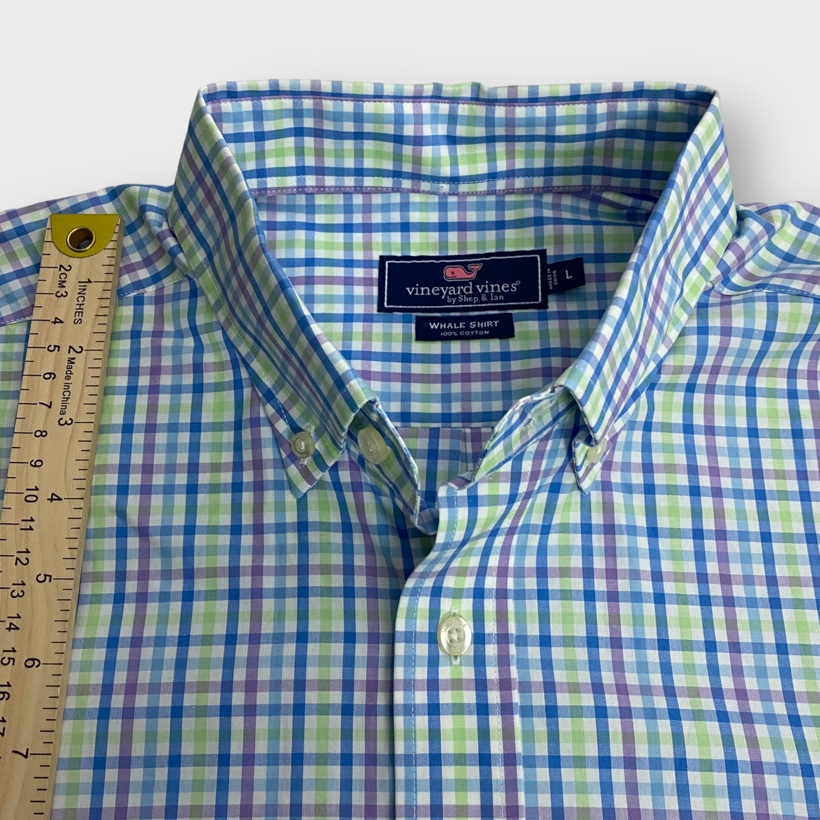 Vineyard Vines Men's Plaid Button-Down Whale Shirt - Size L - Green/Blue/Purple - EUC