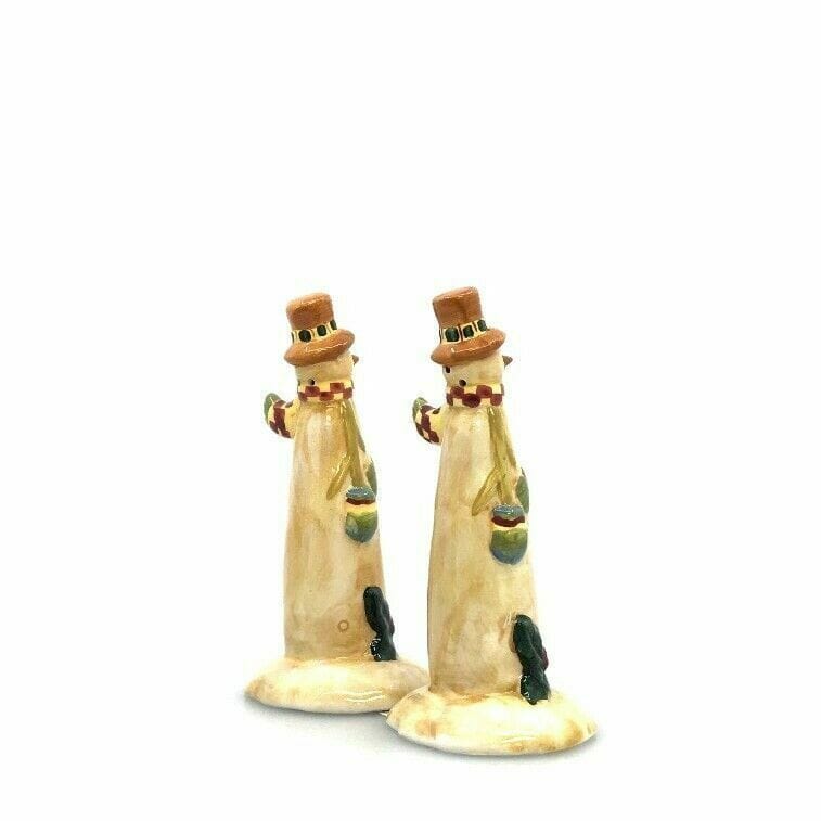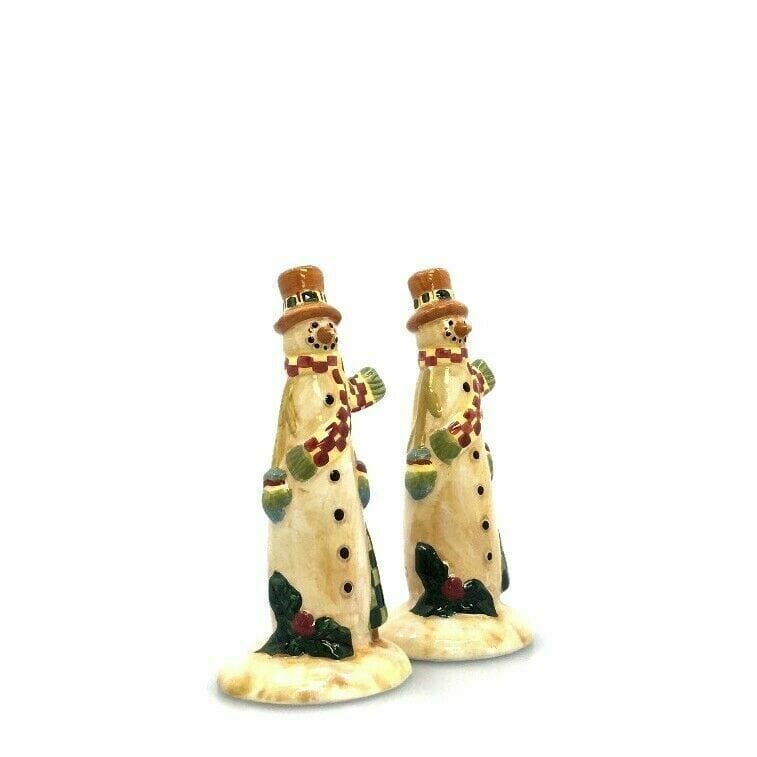 Add a touch of vintage charm to your holiday table with these adorable snowman salt and pepper shakers. Perfect for adding a festive flair to your meals, these ceramic shakers are in very good condition and will make a great addition to your collection.