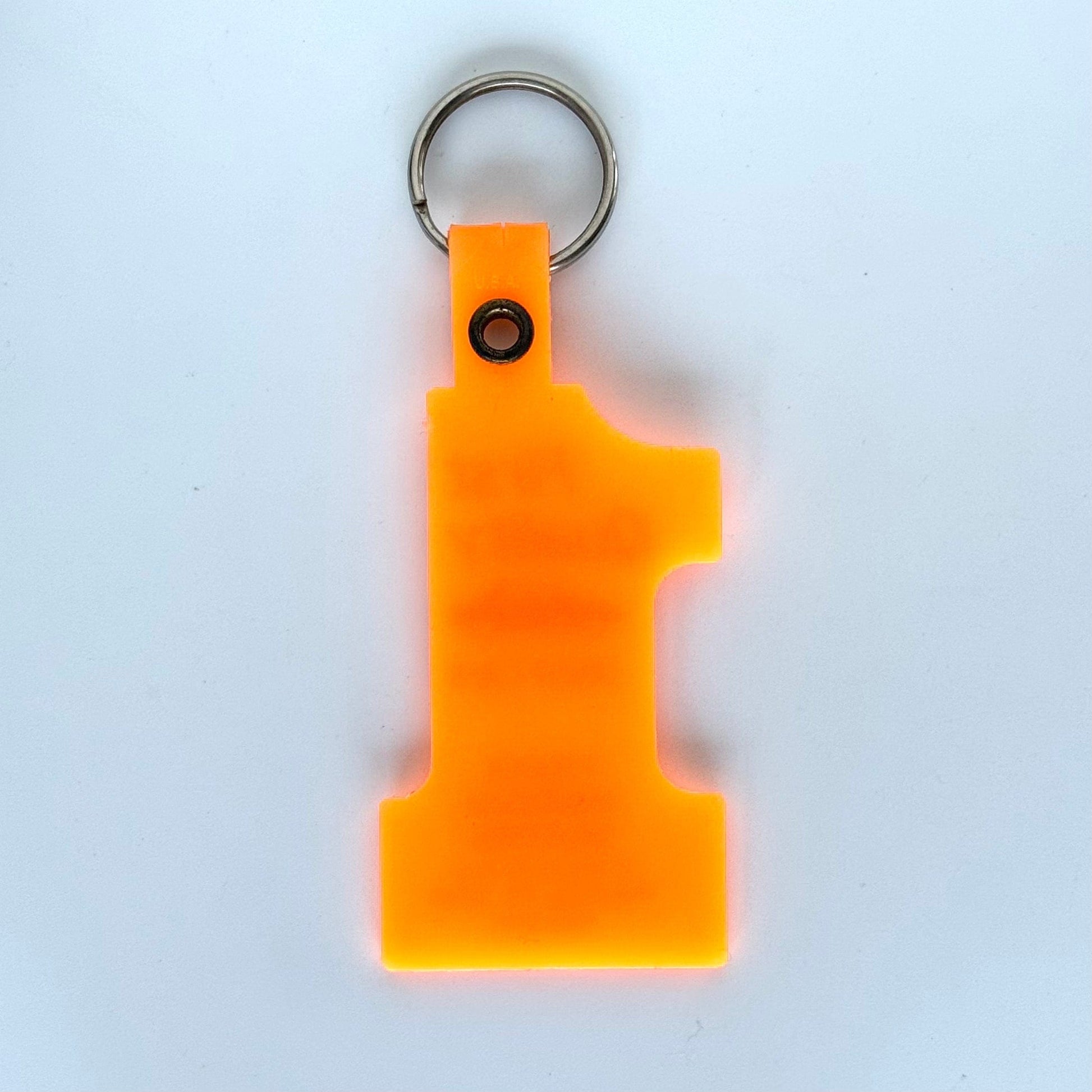 Vintage Frank Marcum Motors Keychain - Neon Orange Plastic Souvenir