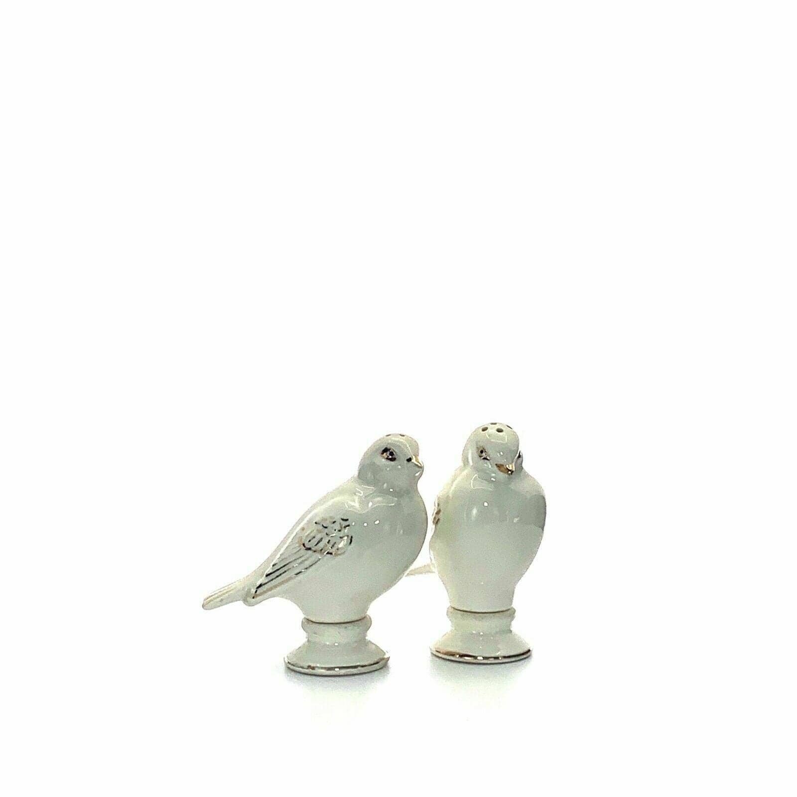 Vintage Goldcastle Ivory Songbird Salt & Pepper Shakers Set Gold Accents