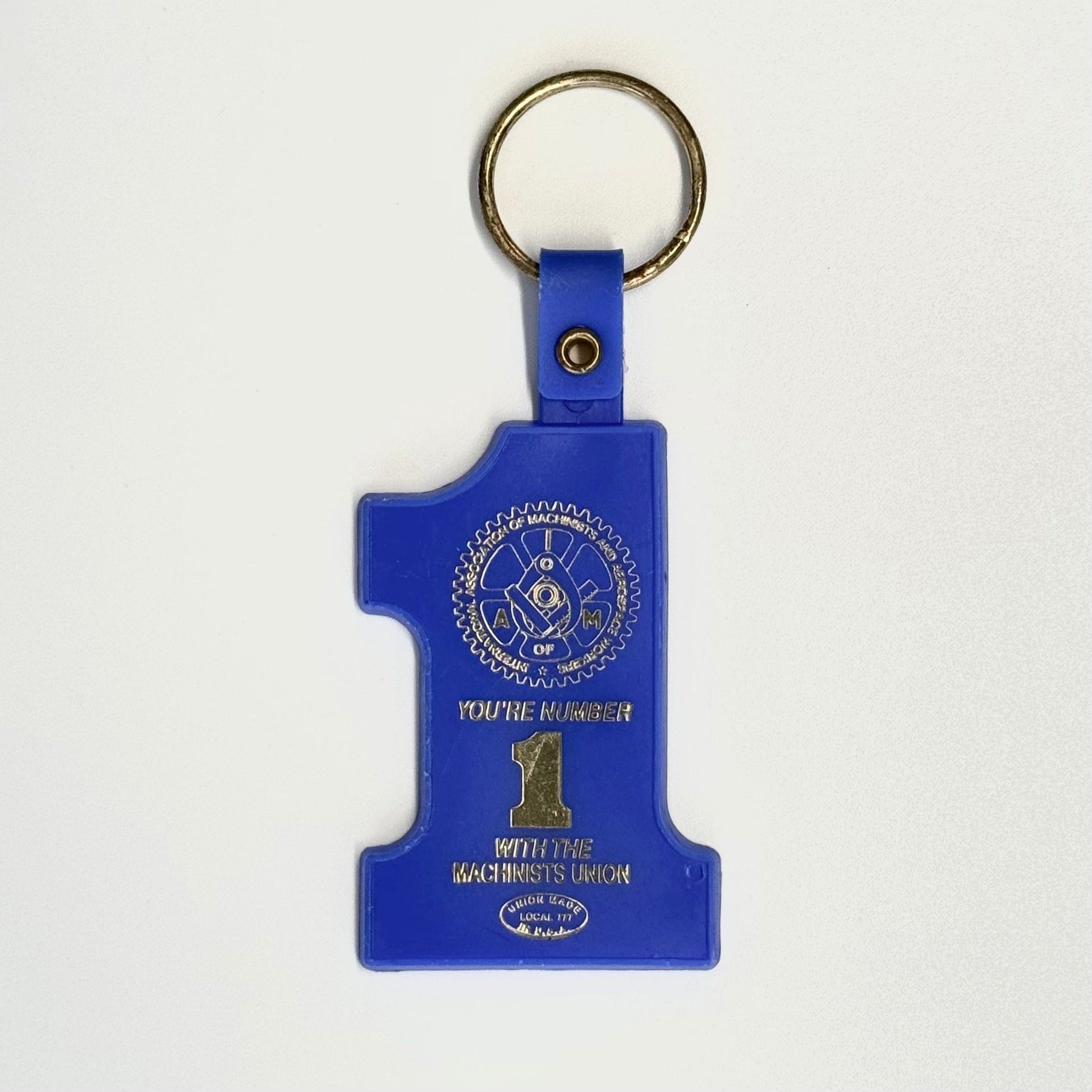Vintage ‘IAM - Machinists’ Keychain Key Ring Blue Plastic #1, Local 777