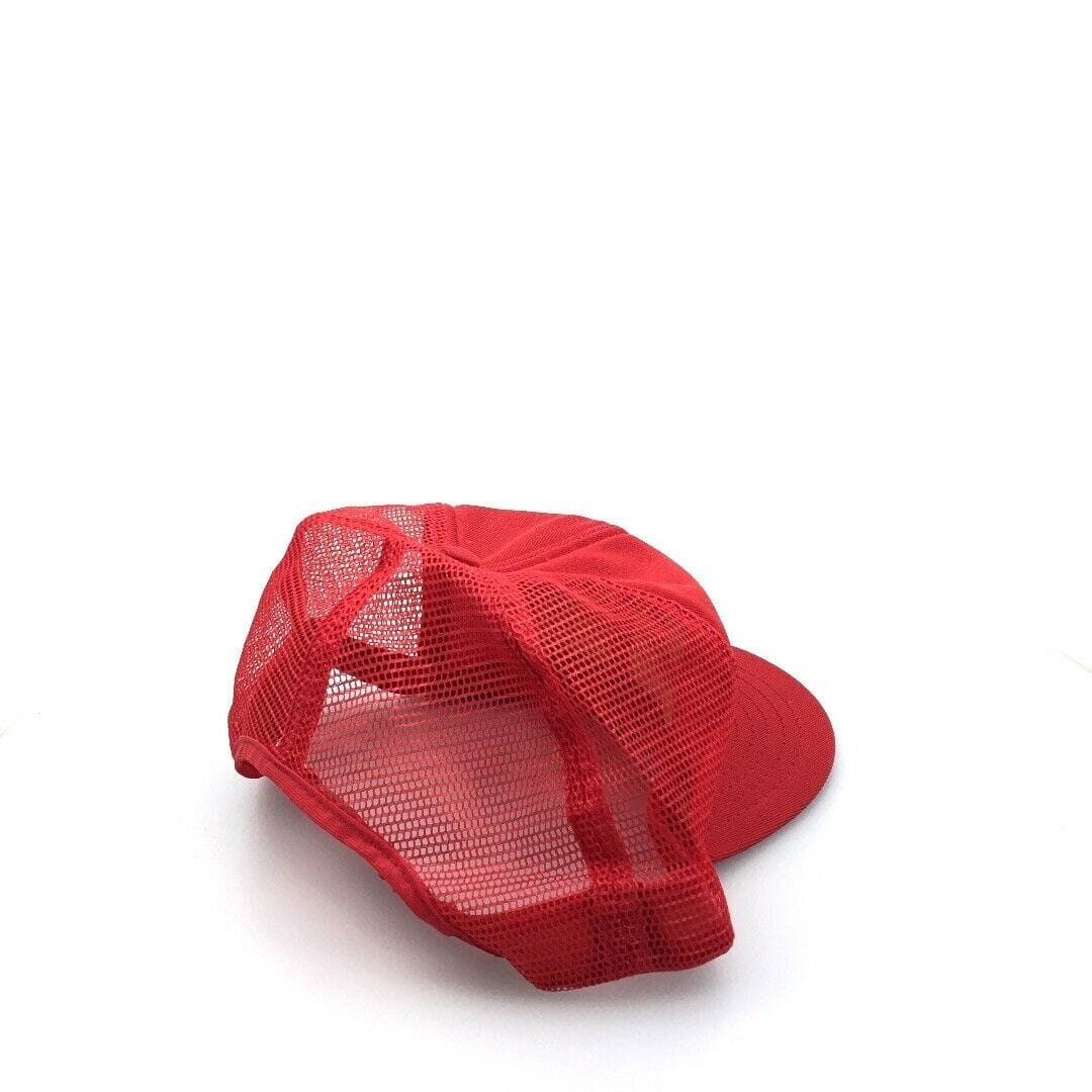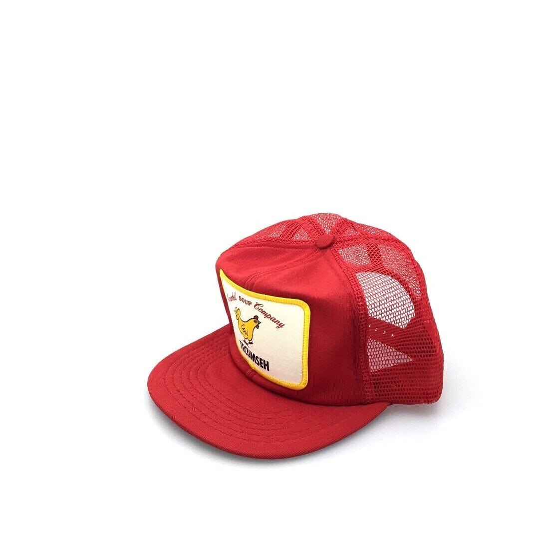 Add a pop of vintage charm to your outfit with this red Vintage K Products Mesh Trucker Hat. Featuring a Campbell Soup Tecumseh NE Patch, this hat is perfect for adding a touch of nostalgia to your look. With its very good condition and unisex design, it's a must-have accessory for any adult.