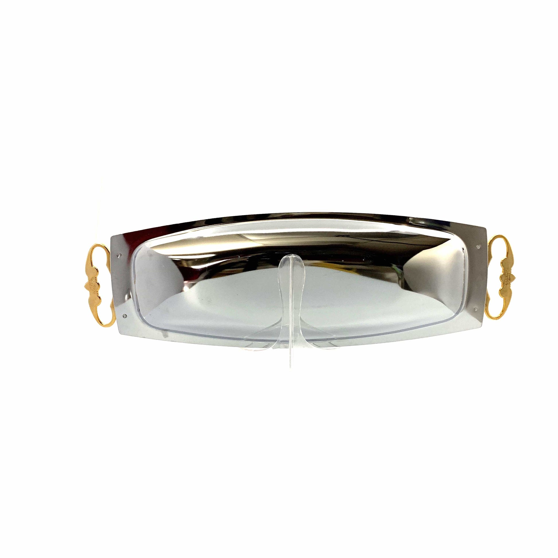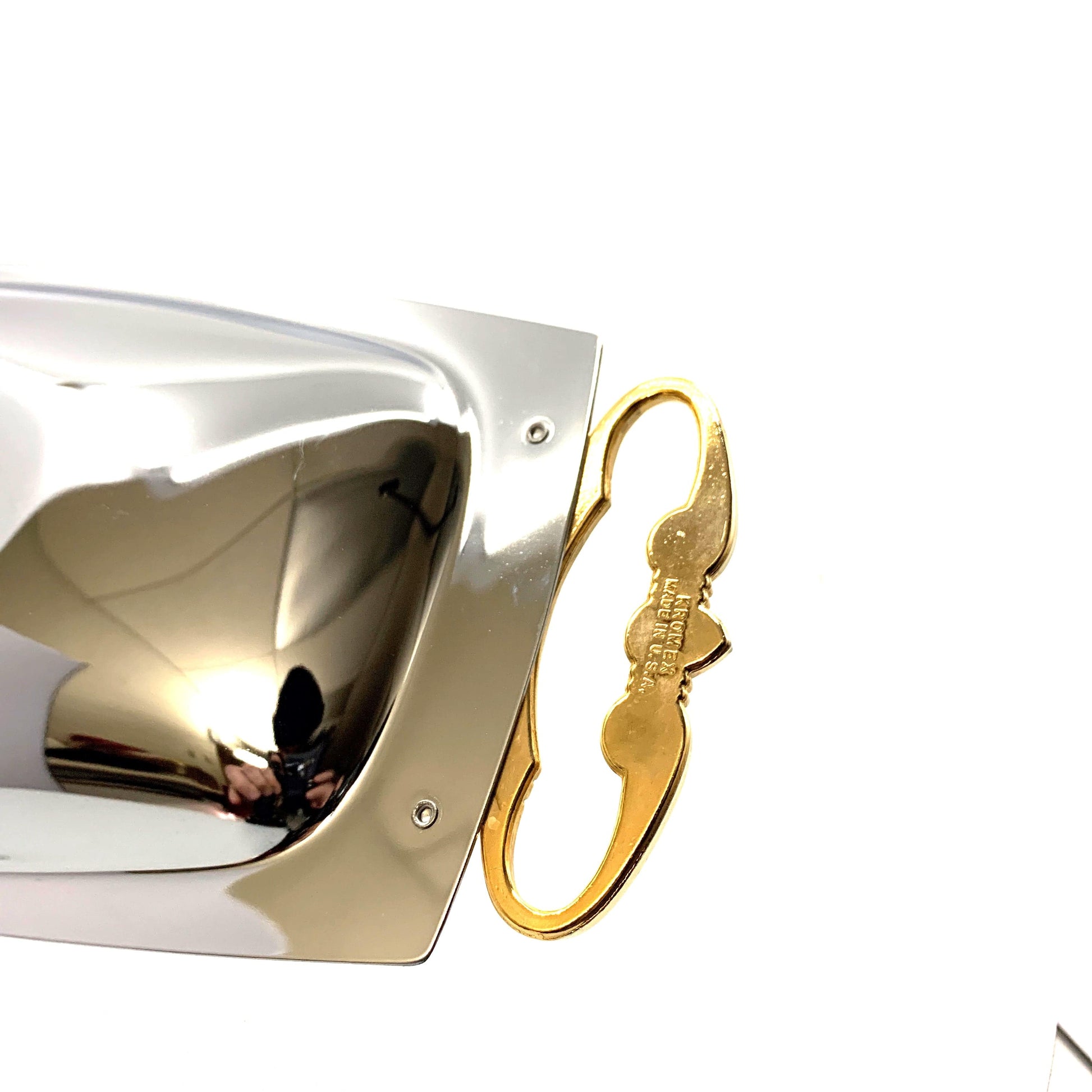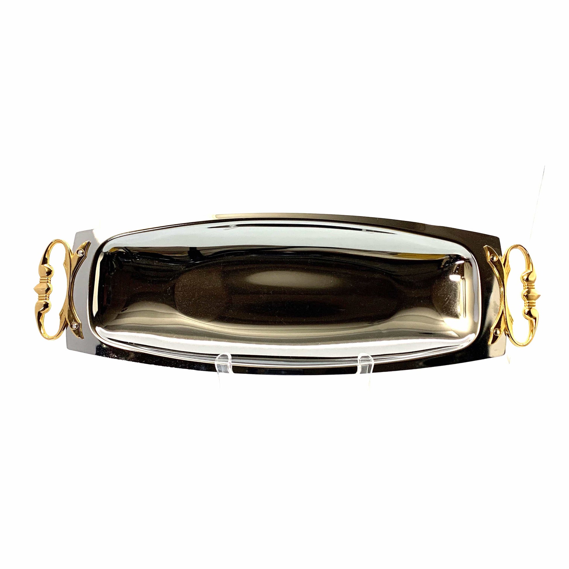 Vintage Kromex 1950s Chrome Serving Tray Brass Handles MCM Bread Rolls Atomic