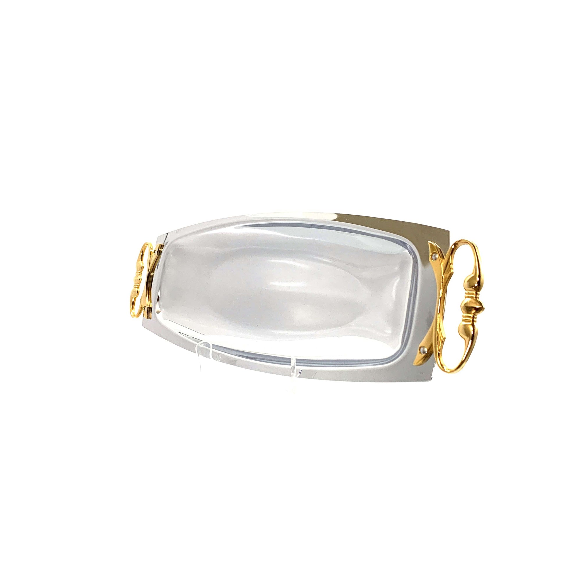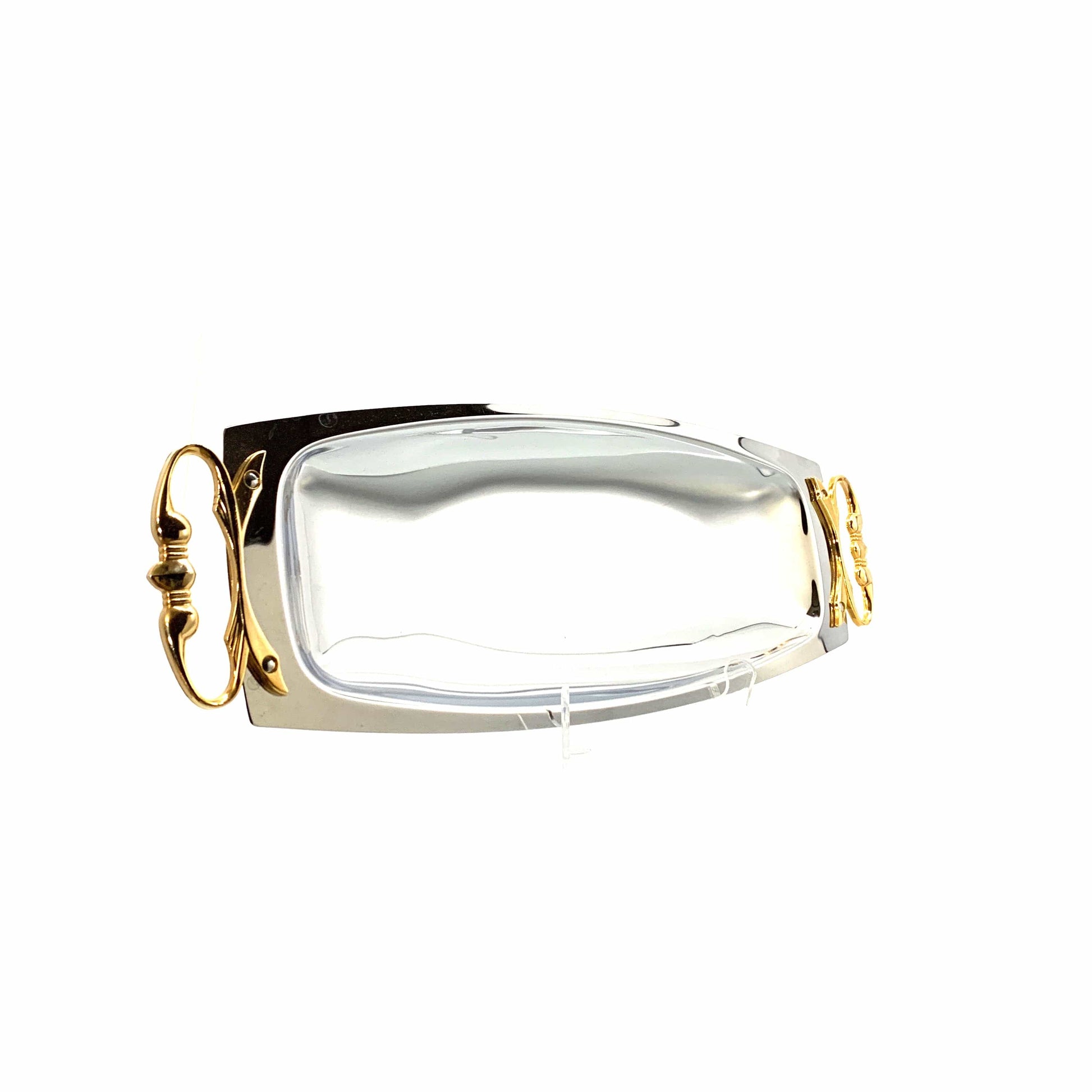 Add a touch of retro charm to your dining experience with this vintage Kromex serving tray. The chrome finish and brass handles exude elegance, while the atomic design adds a playful twist. Perfect for serving bread rolls or any other delectable treats.