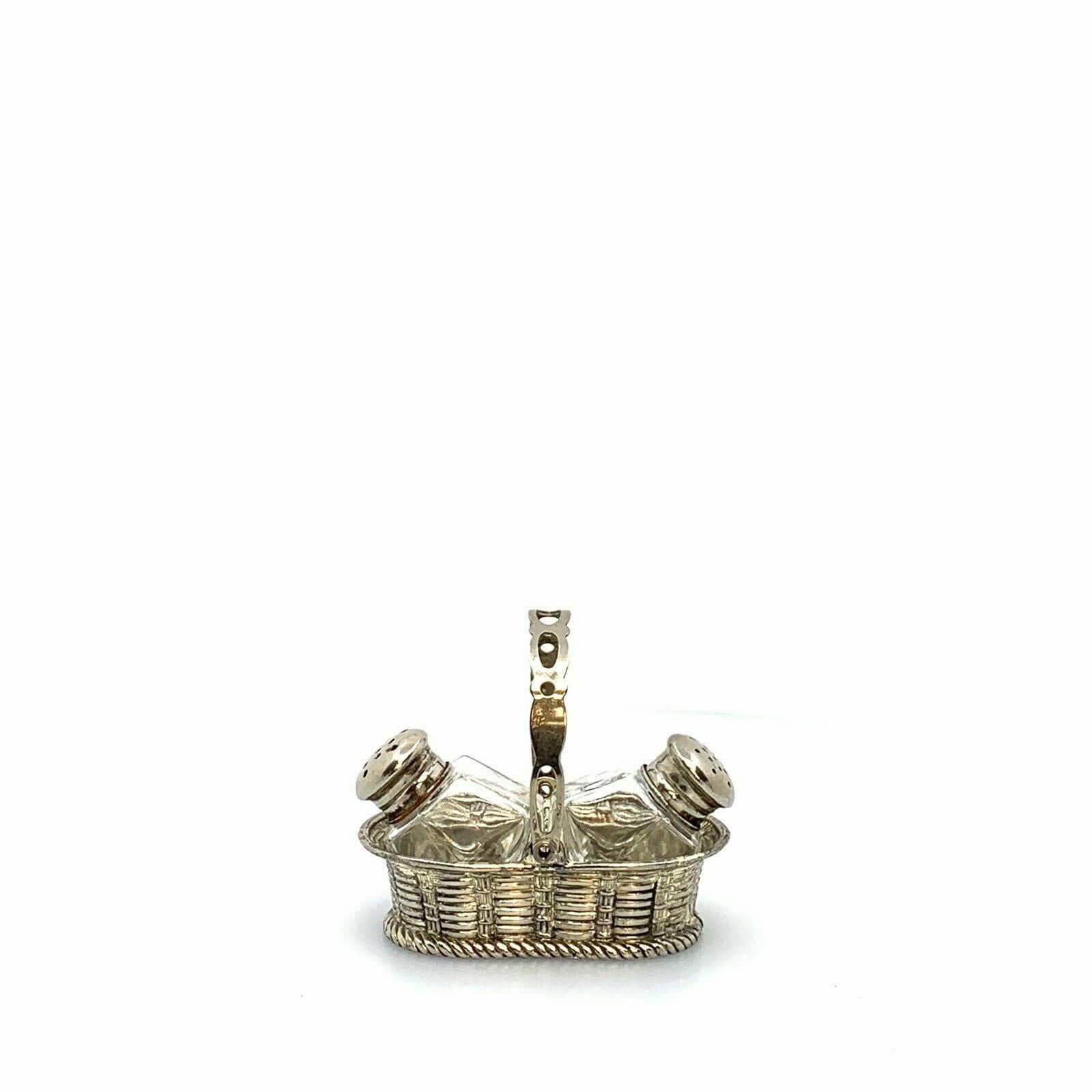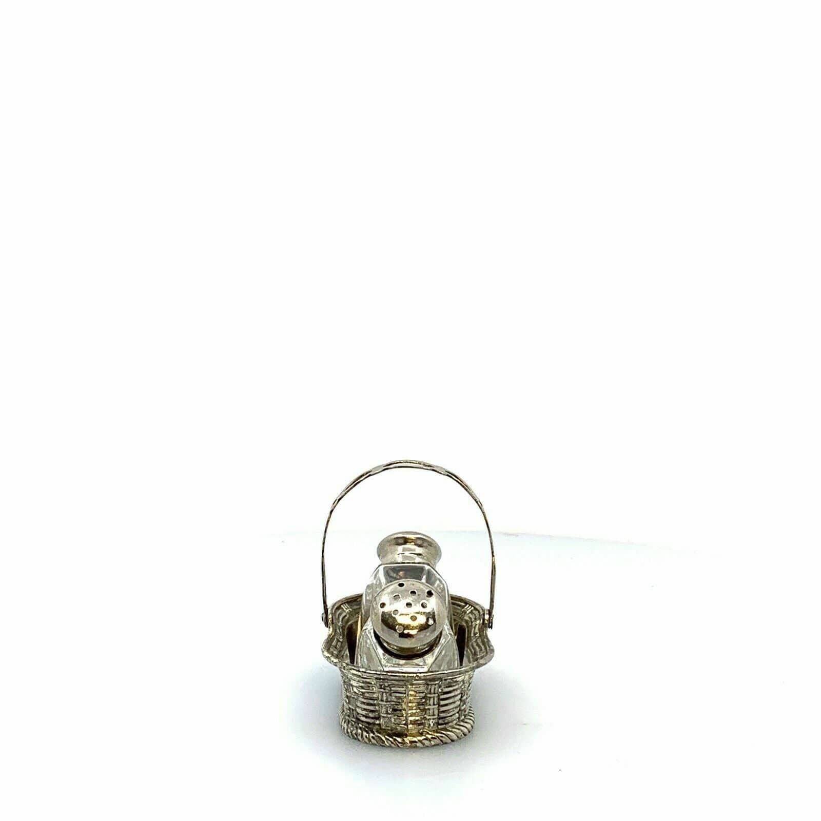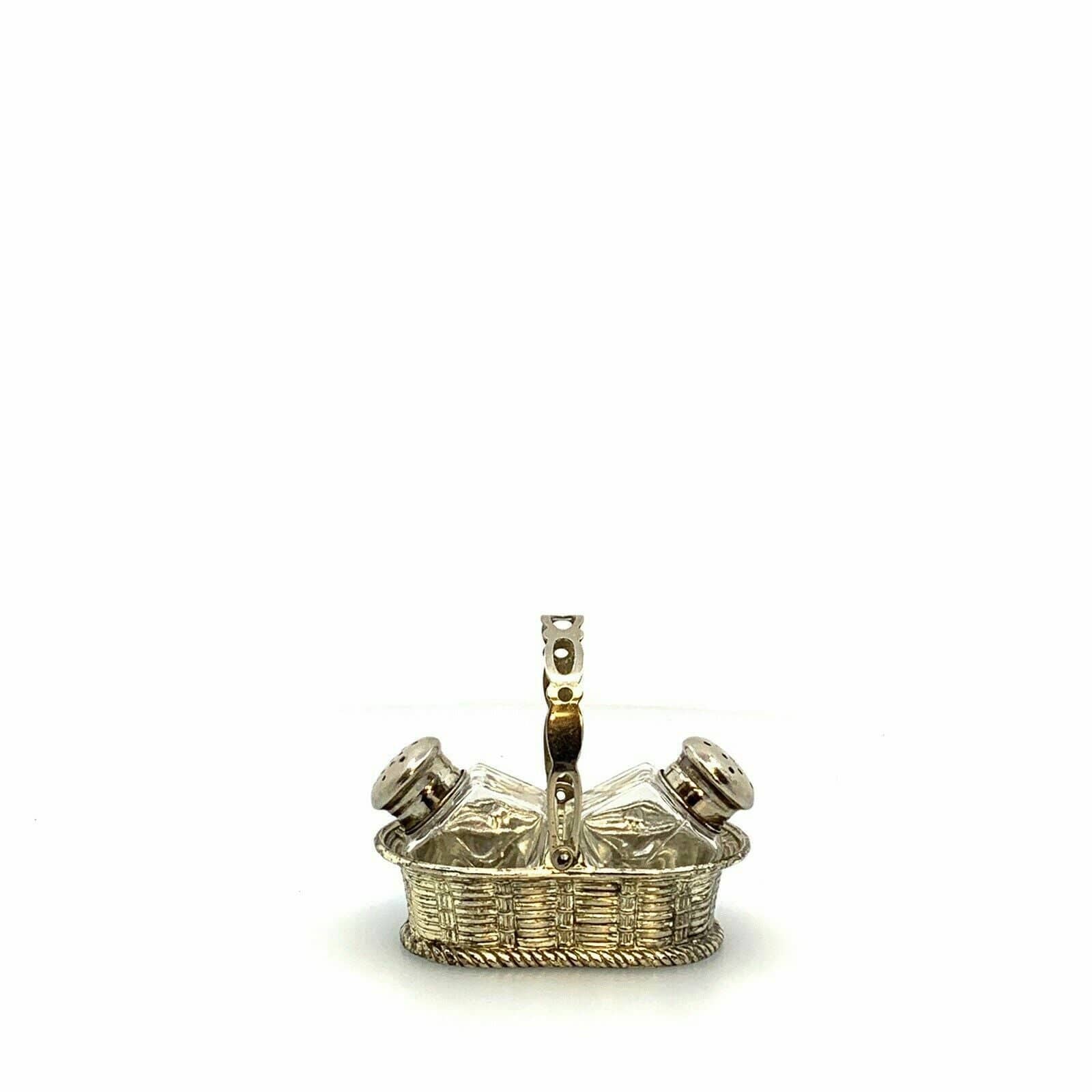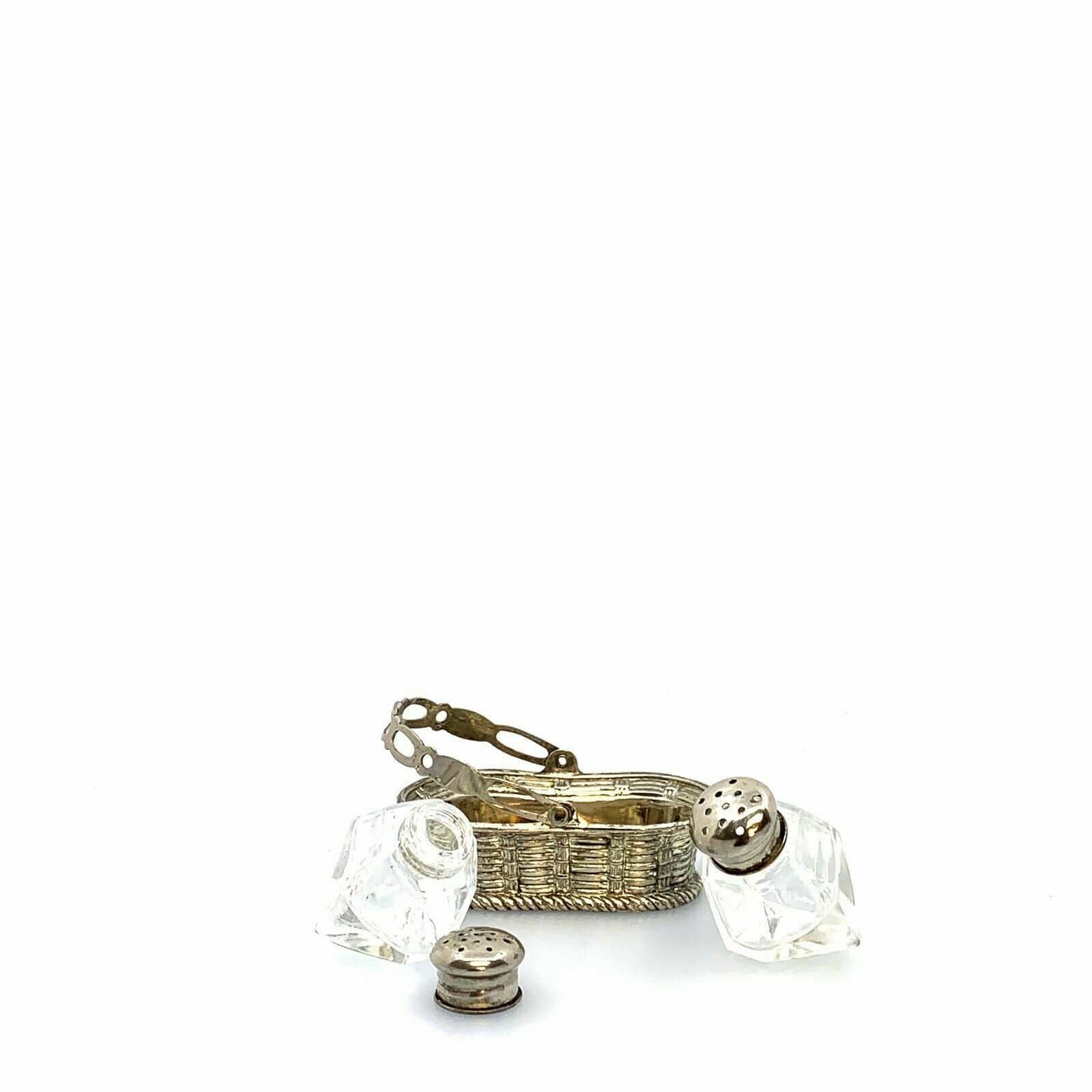 Vintage Leonard Crystal Salt & Pepper Shakers Silver Basket Holder Japan
