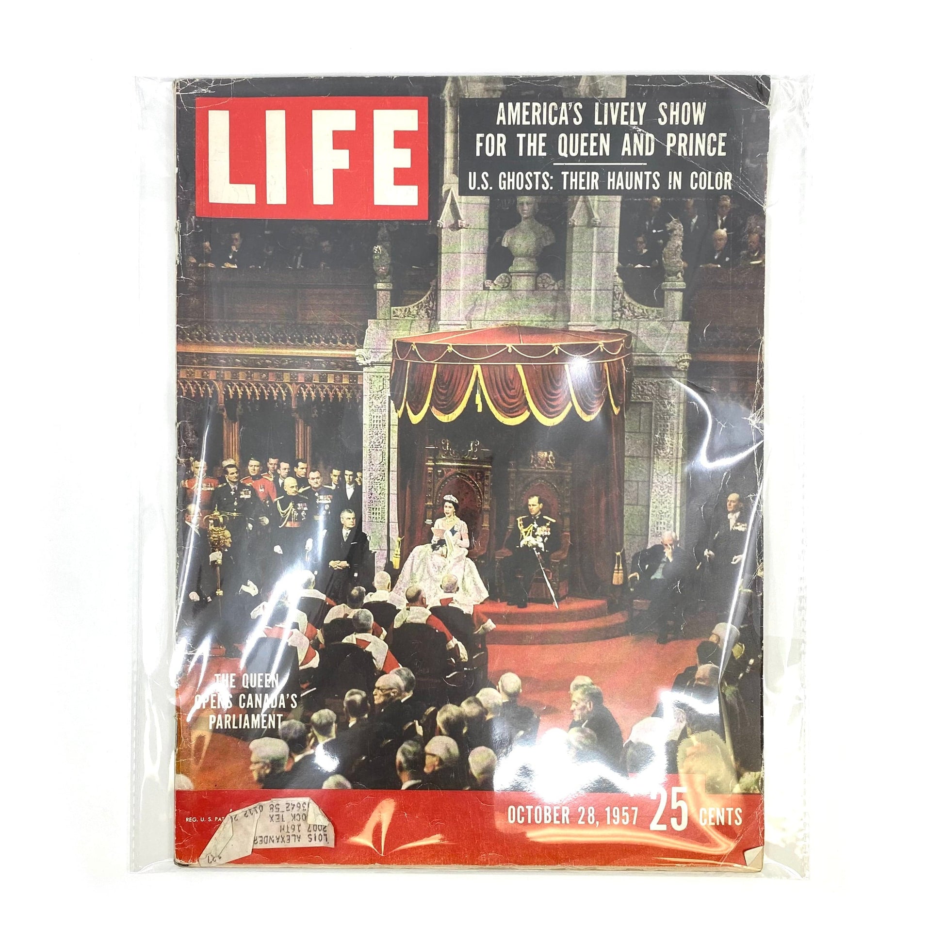 Step back in time with this vintage LIFE Magazine from October 1957. Experience the excitement as "The Queen Opens Canada's Parliament" in this captivating piece of history. Immerse yourself in the past and feel the nostalgia of this authentic, made in the USA periodical.