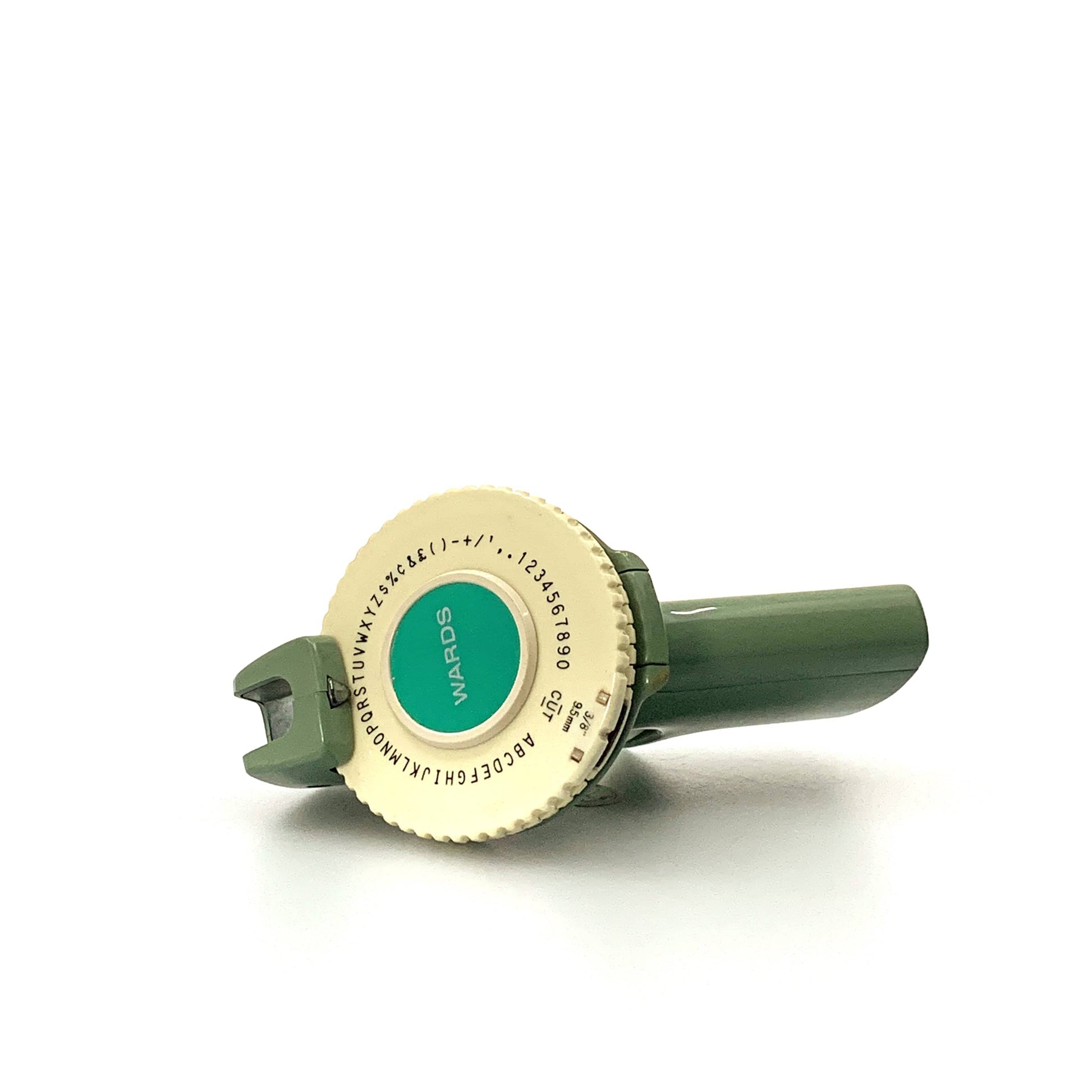 Vintage Montgomery Wards Label Maker 3/8” Tape Green Plastic
