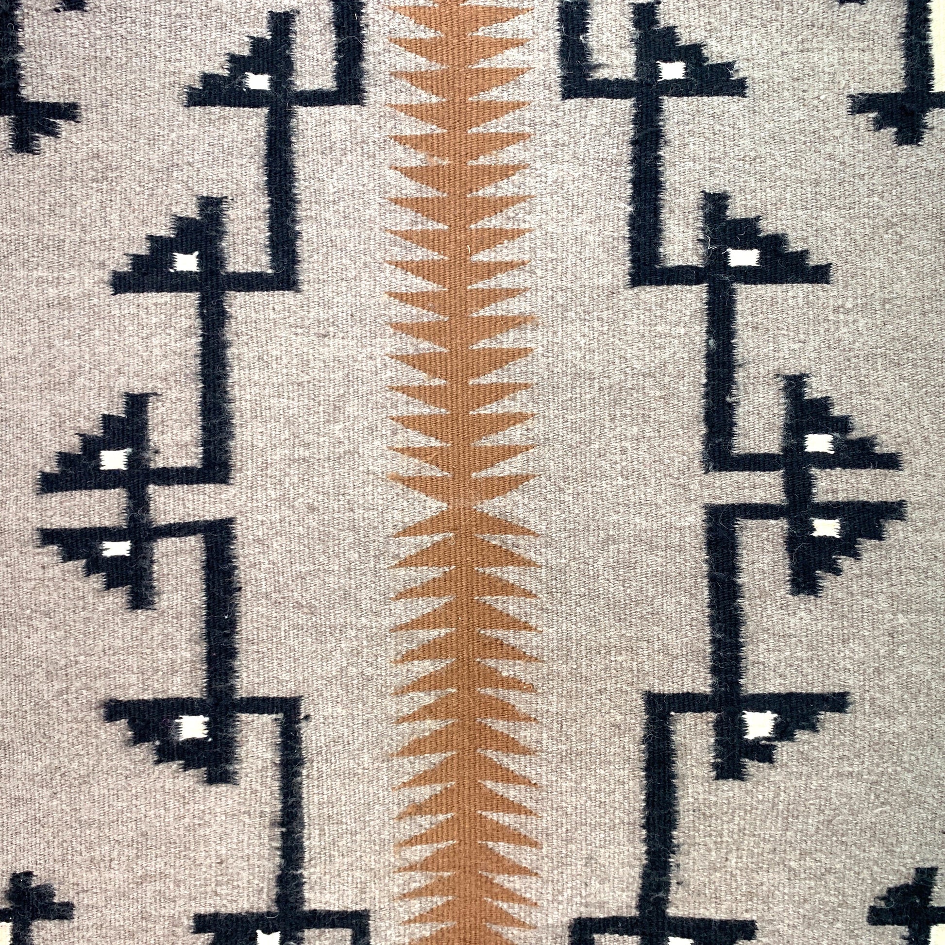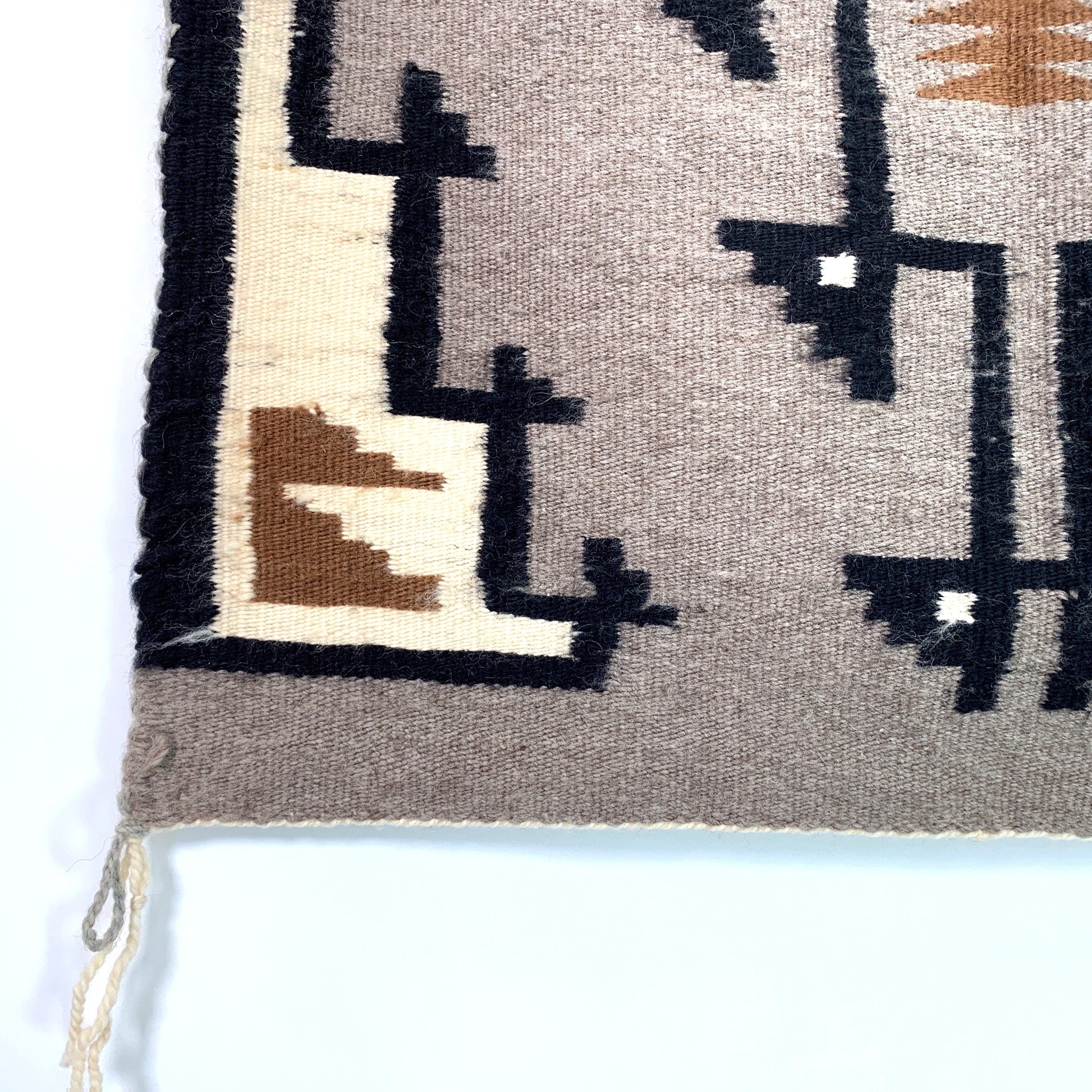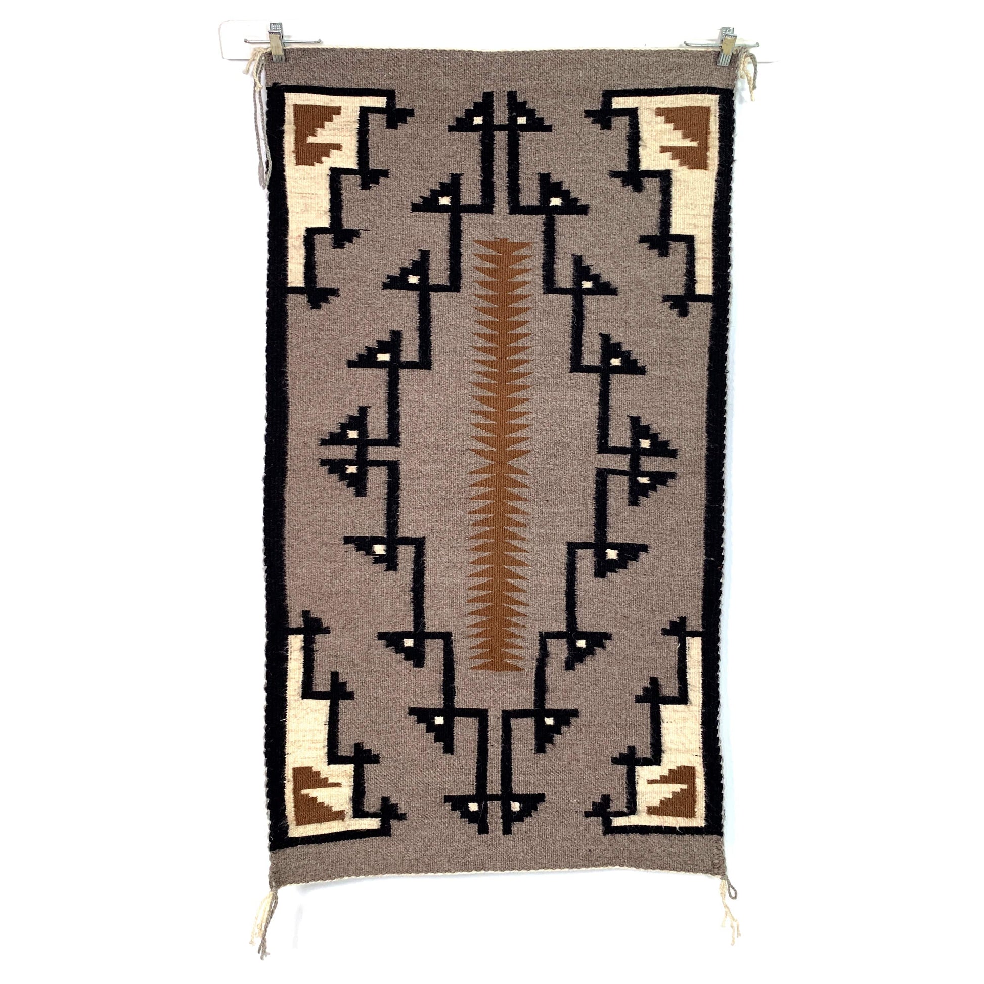 Vintage Navajo Hand-Woven Gray Brown Geometric Kilim Rug by Lena Begay 45” x 25”