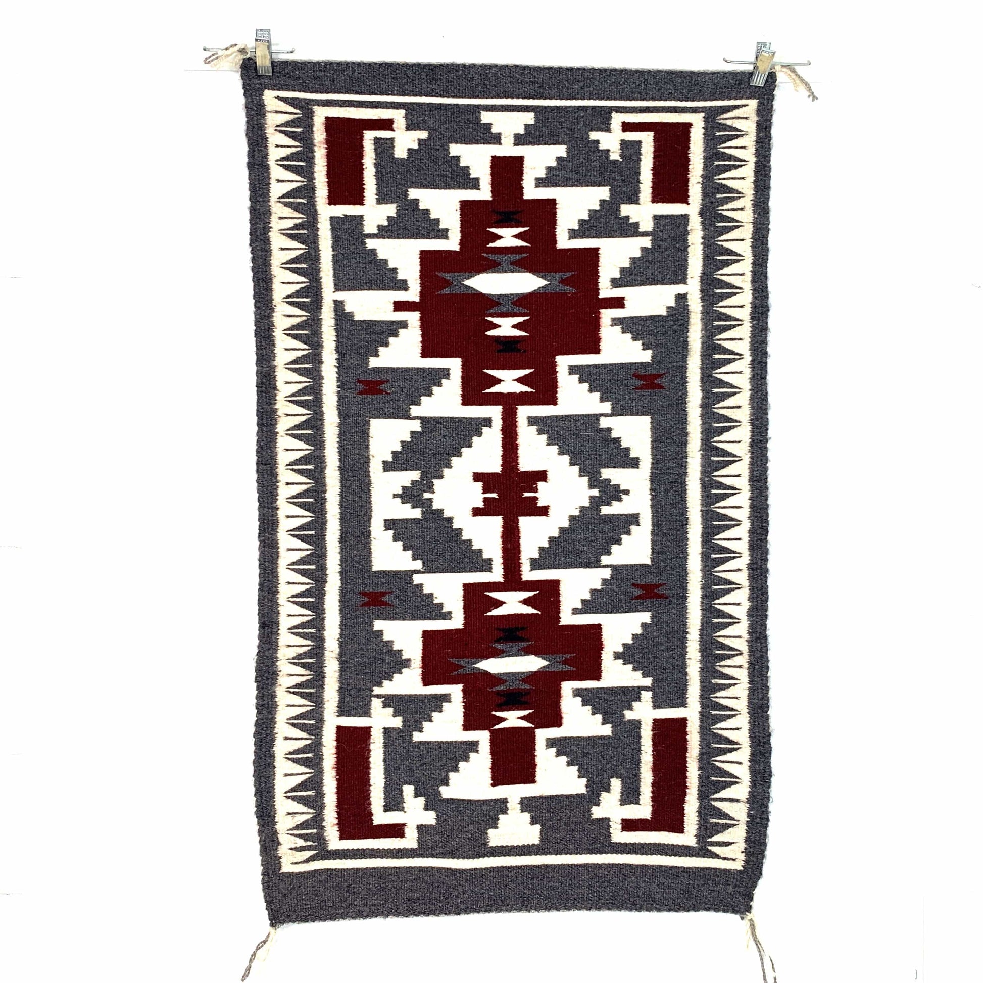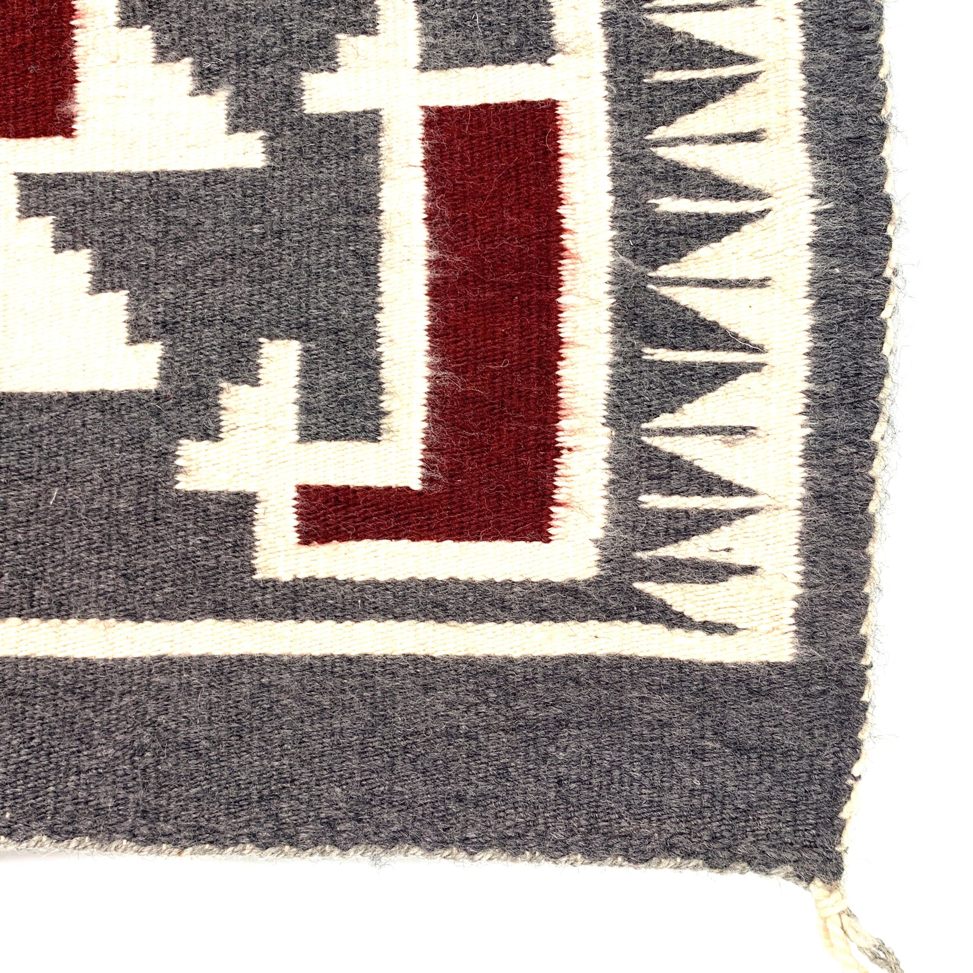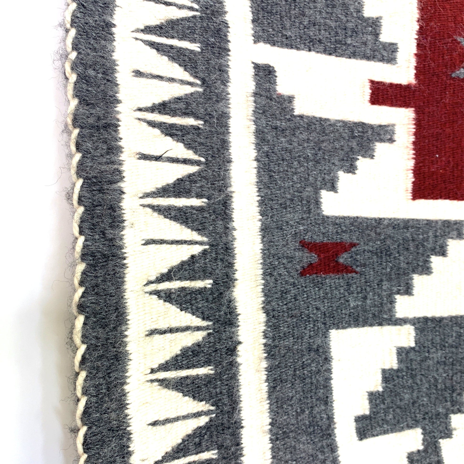 Vintage Navajo Hand-Woven Gray Red Geometric Kilim Rug by Lena Begay 40” x 25”