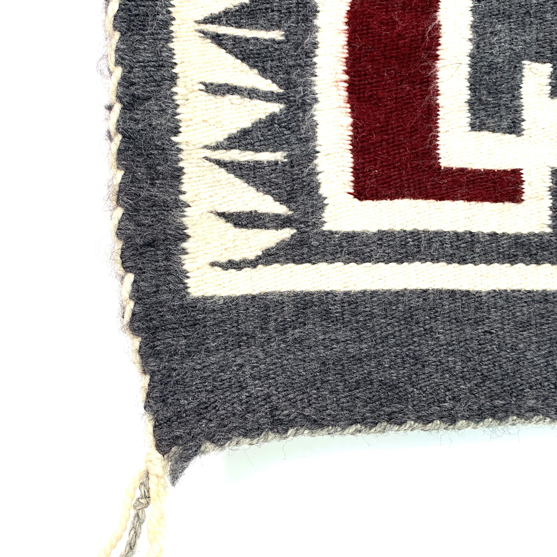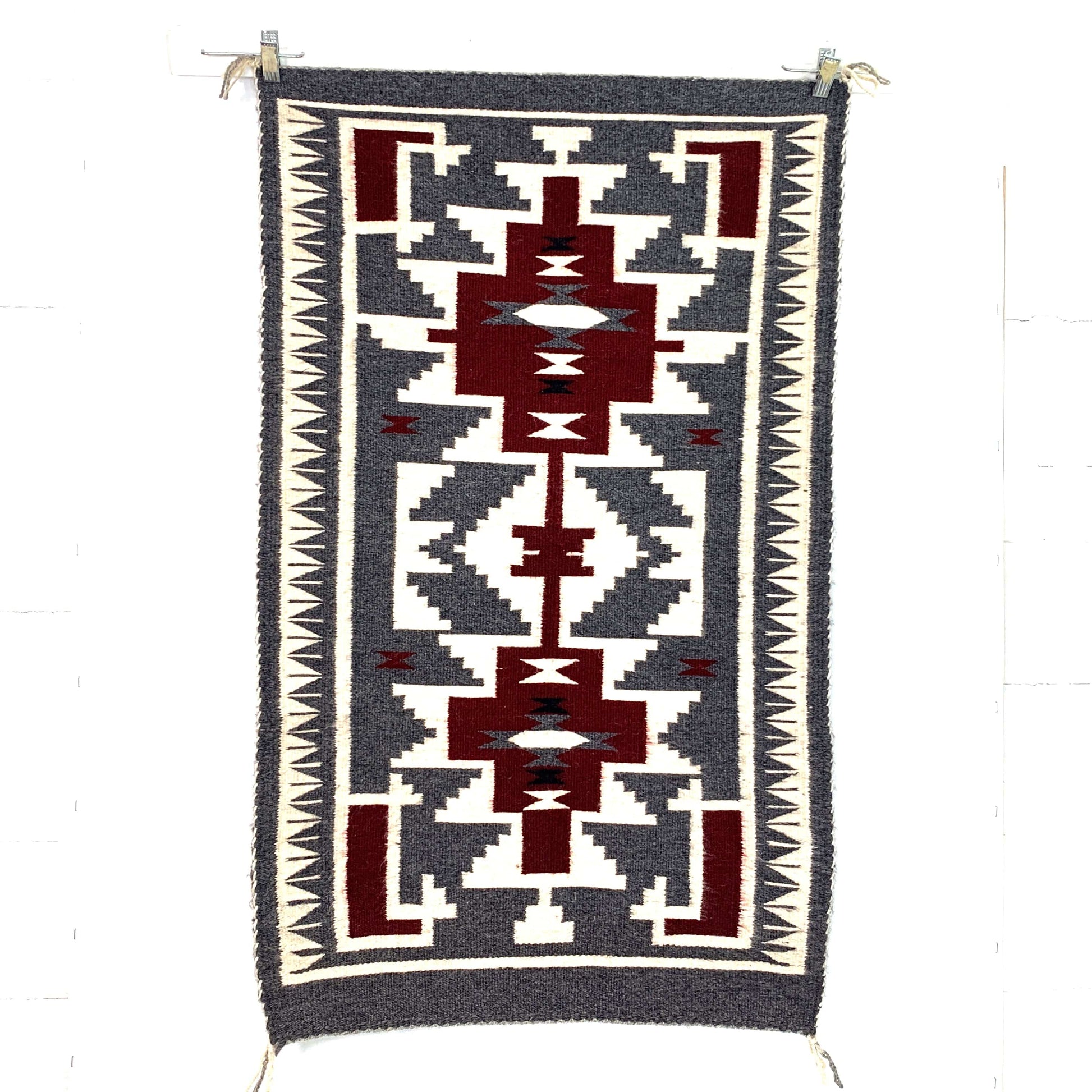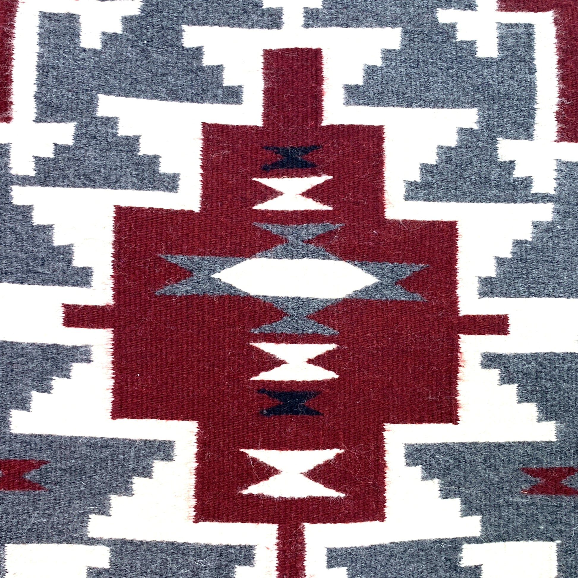 Vintage Navajo Hand-Woven Gray Red Geometric Kilim Rug by Lena Begay 40” x 25”