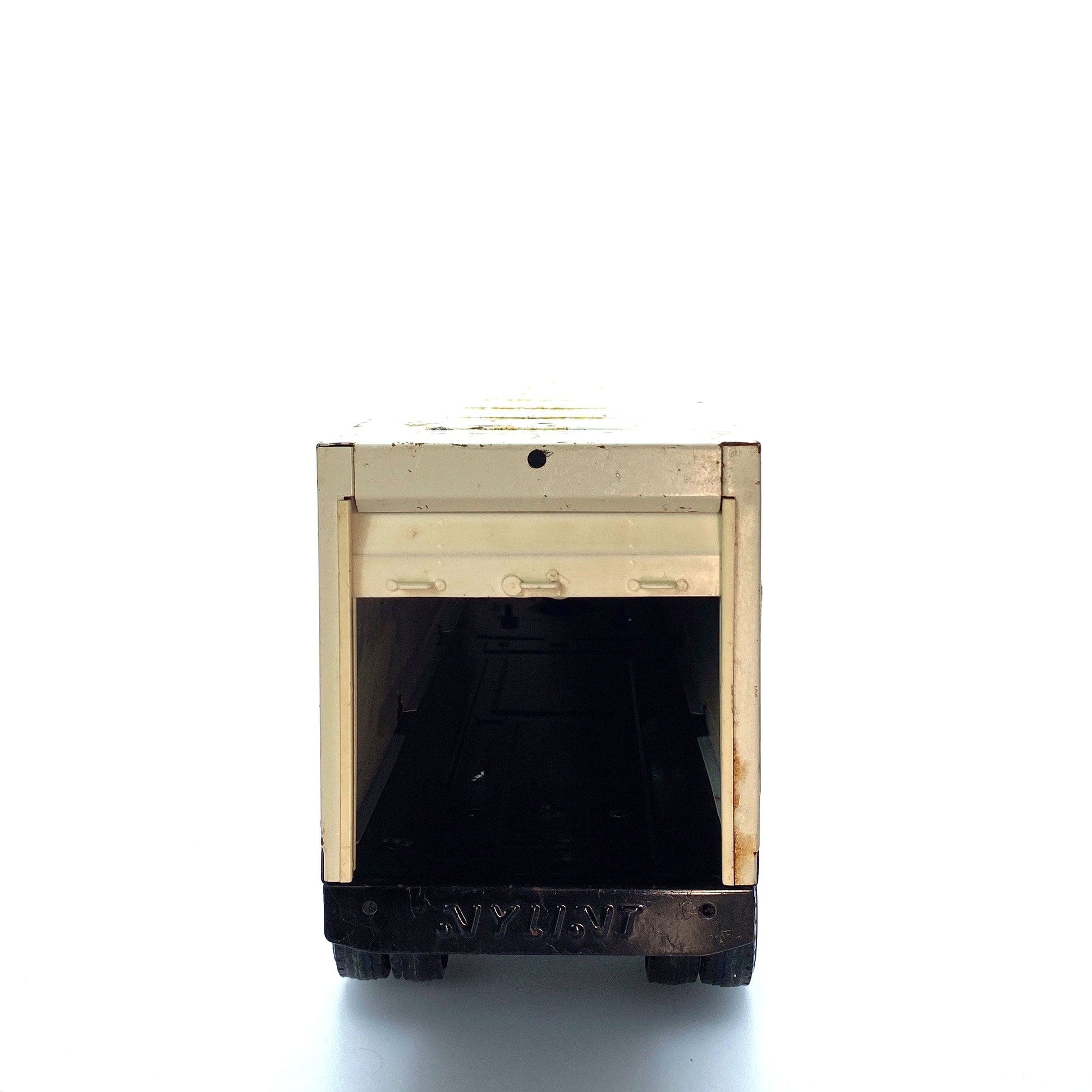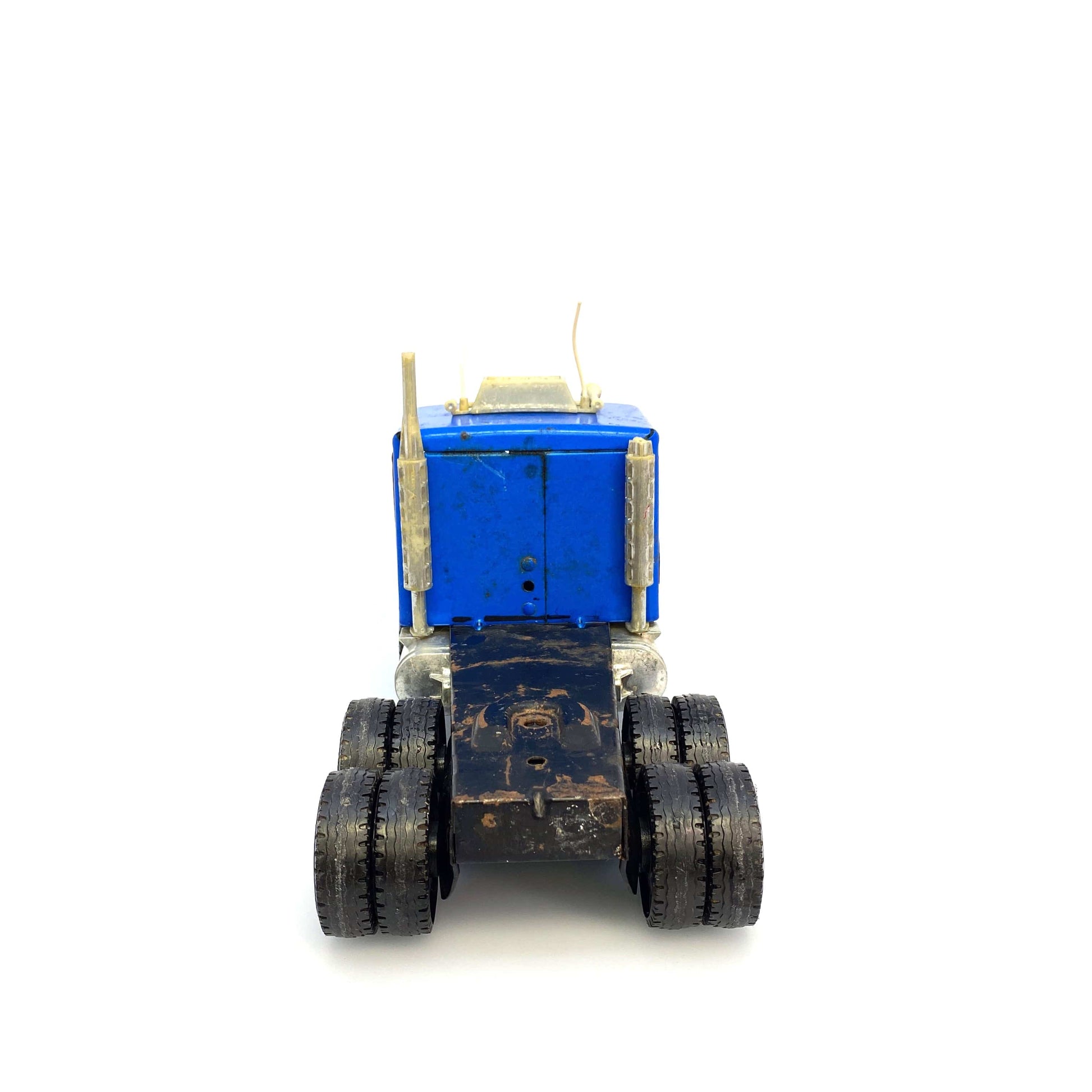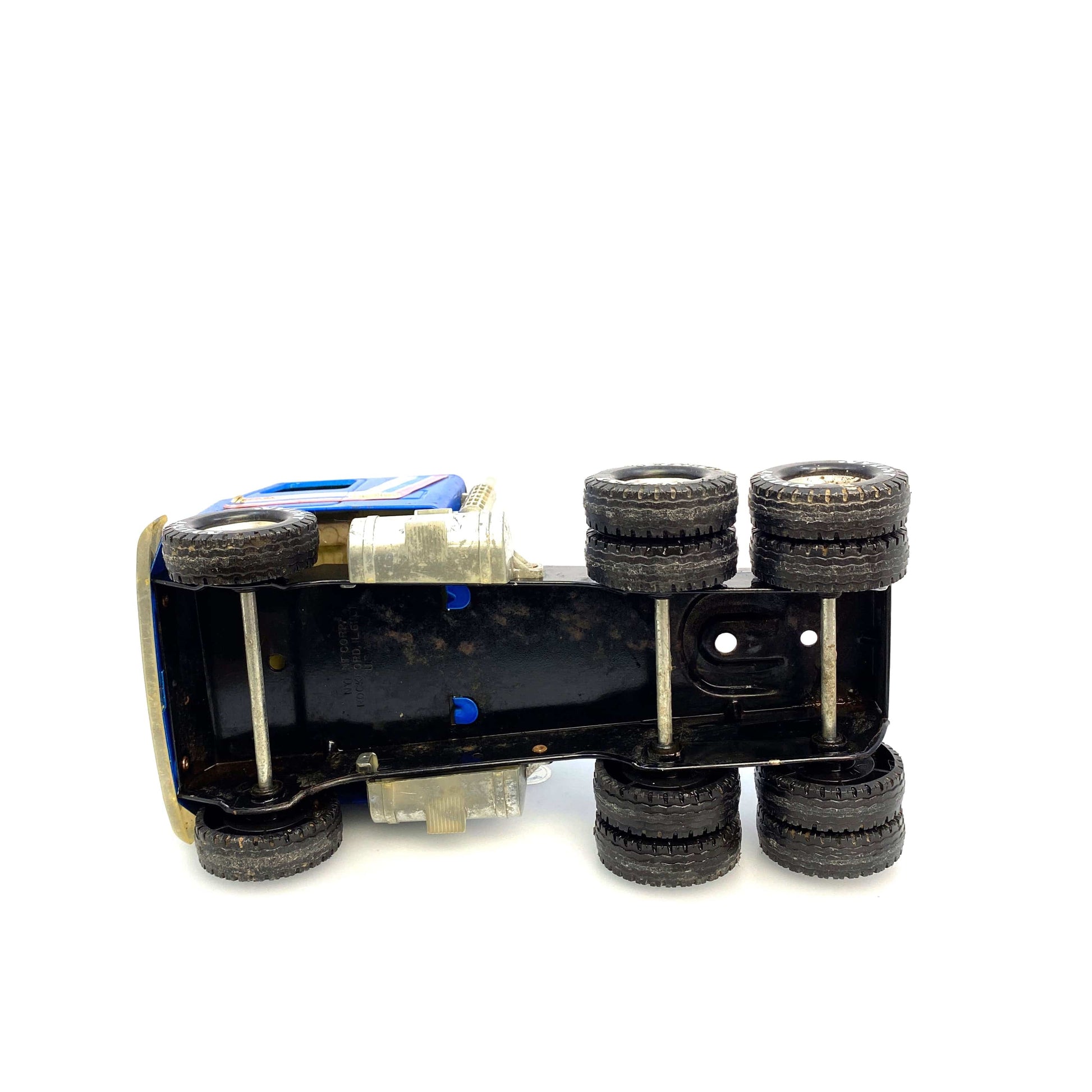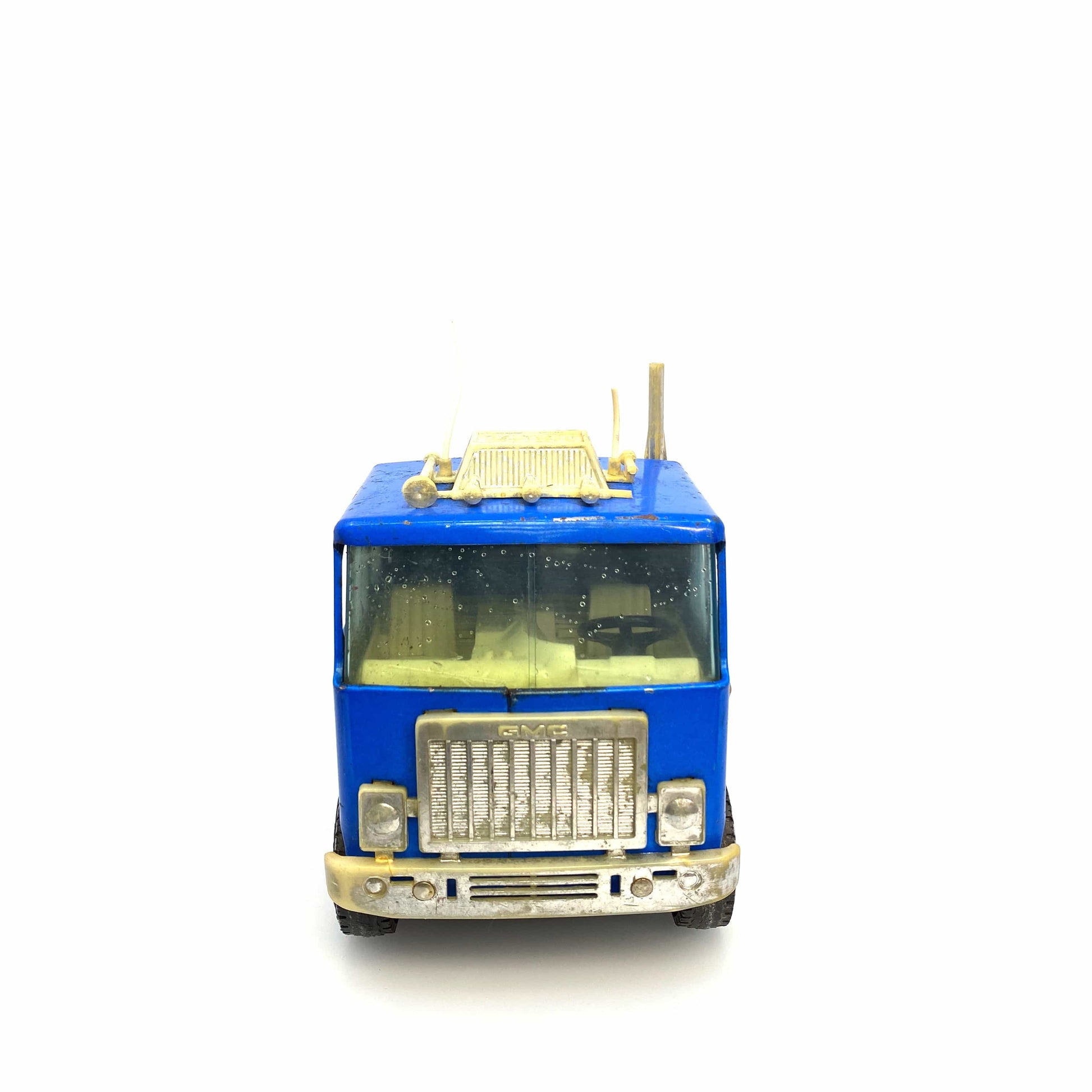 Experience the nostalgia of the vintage Nylint GMC Cab over Astro Tractor Trailer. This 18-wheeler "The Rig" Semi Truck is a true American classic. With its blue and white design, it's perfect for both kids and adults who love toy trucks and construction vehicles. Made with high-quality metal, this truck is built to last. Get ready for hours of fun and adventure with this 22" beauty.