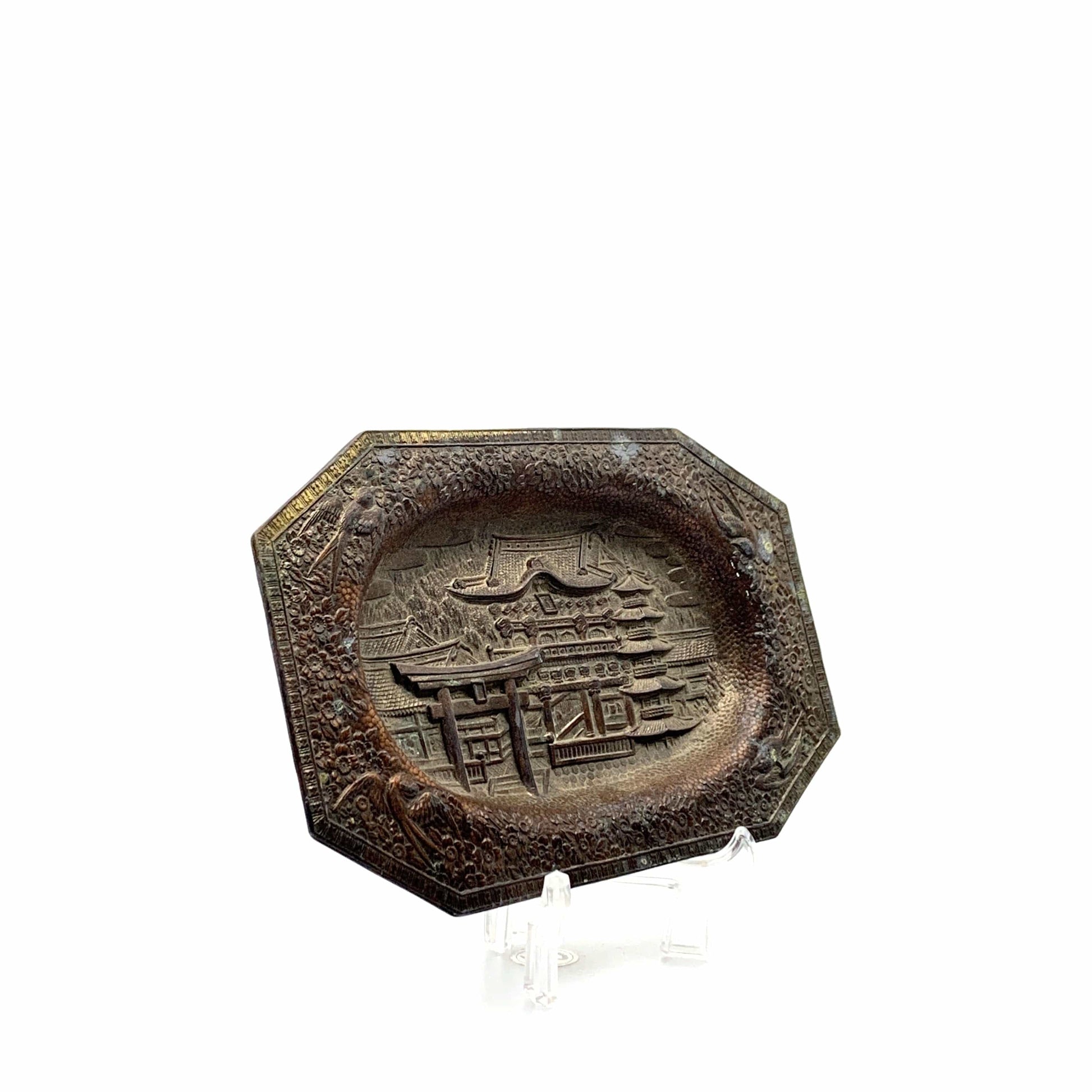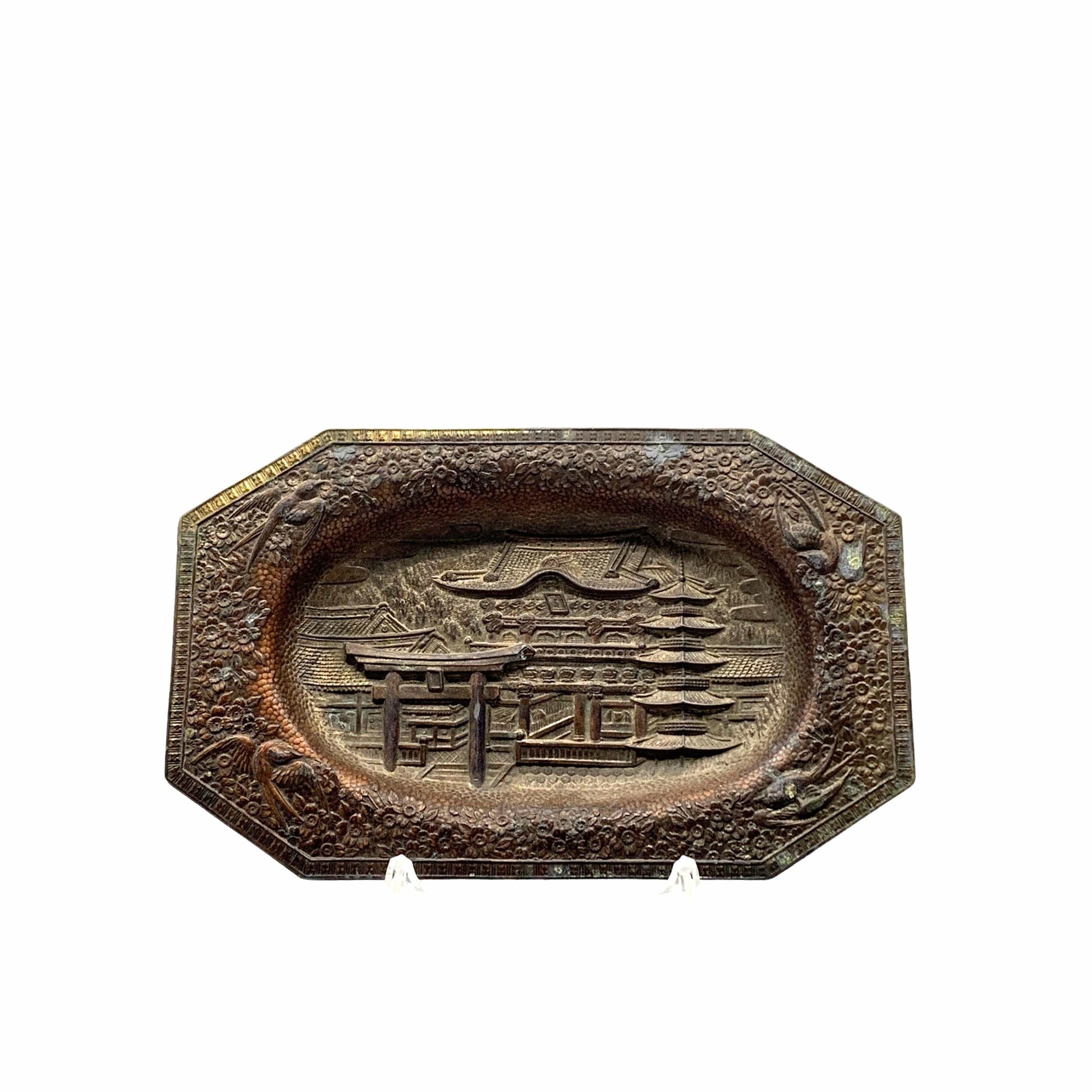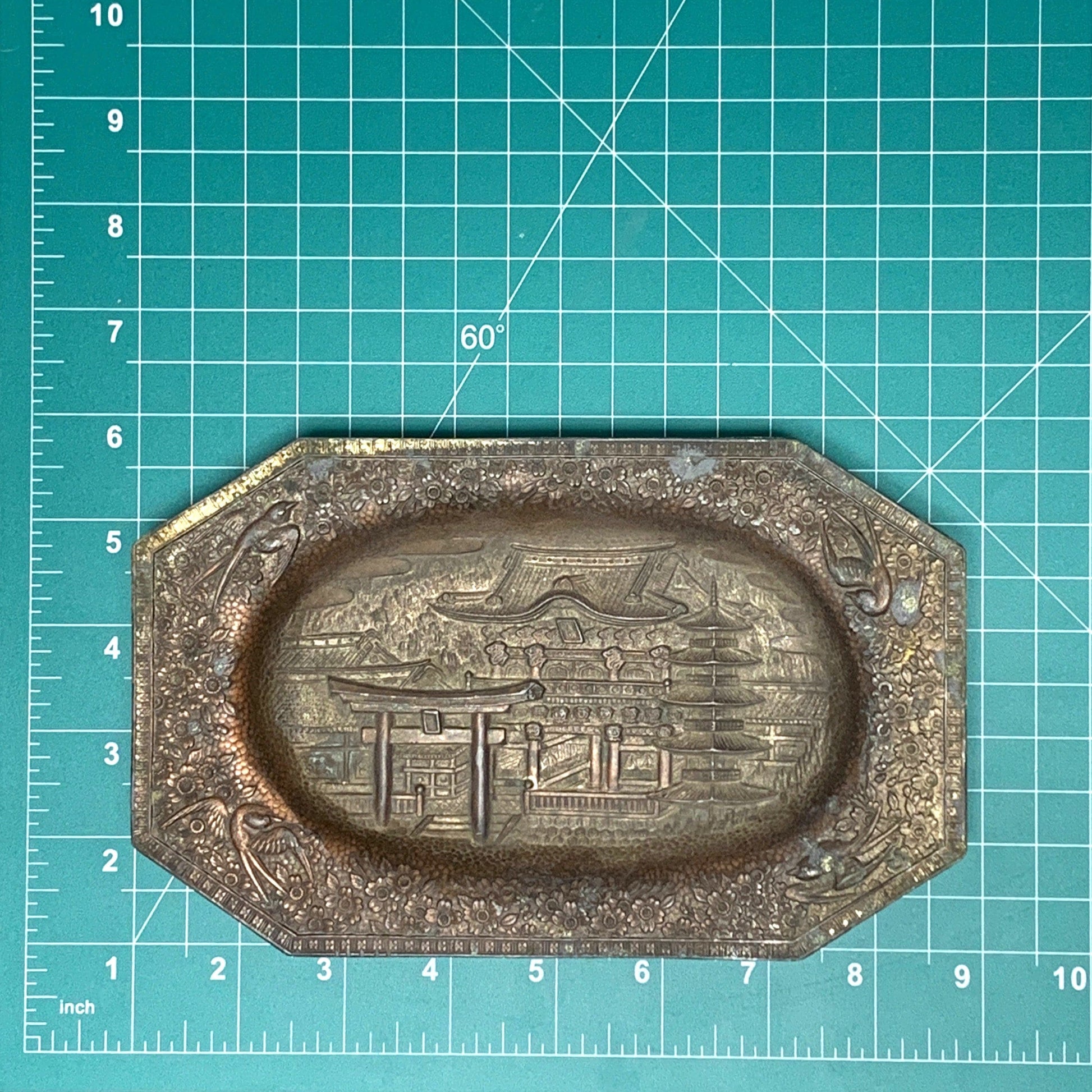 Vintage Pressed Tin Relief Tray Asian Japanese Culture Change Keys