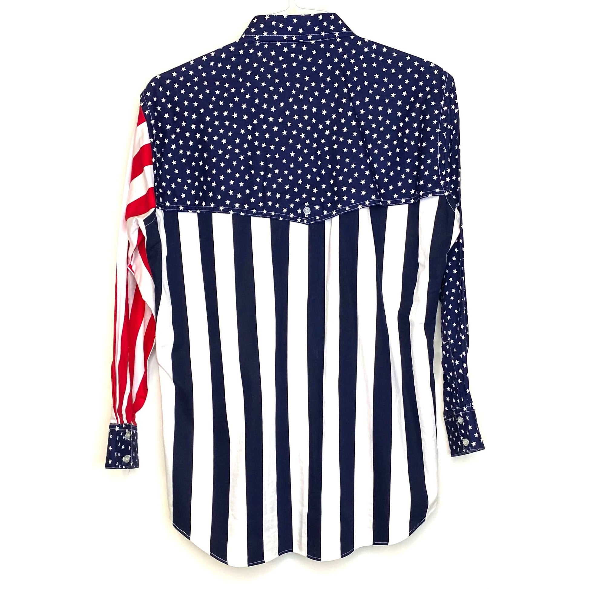 Vintage Ruddock Shirtmakers Mens Size M X-Long Red White Blue Button-Down Shirt L/s Flag Pre-Owned