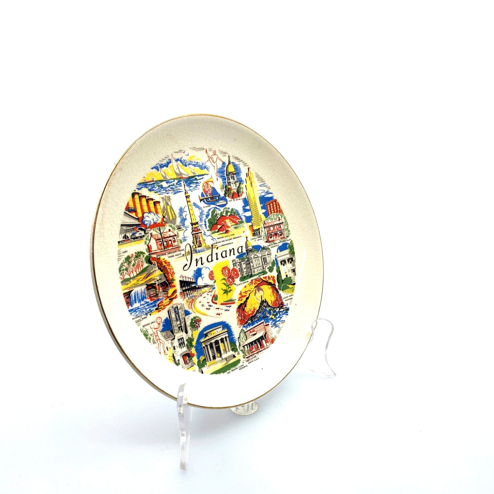 Vintage State Souvenir Plate “Indiana” Collectible, White - 7.5”