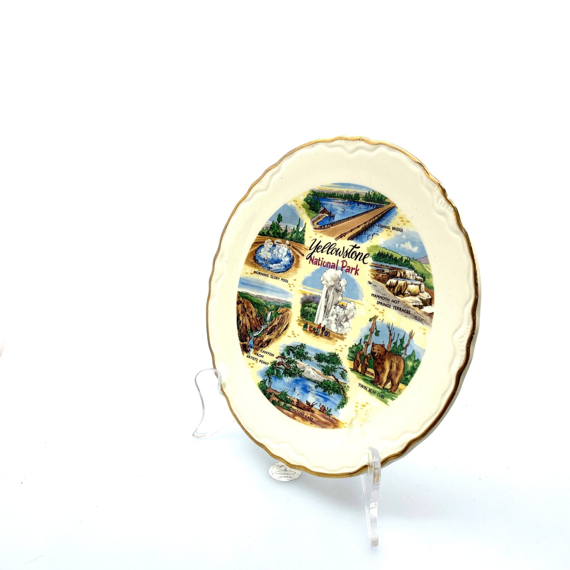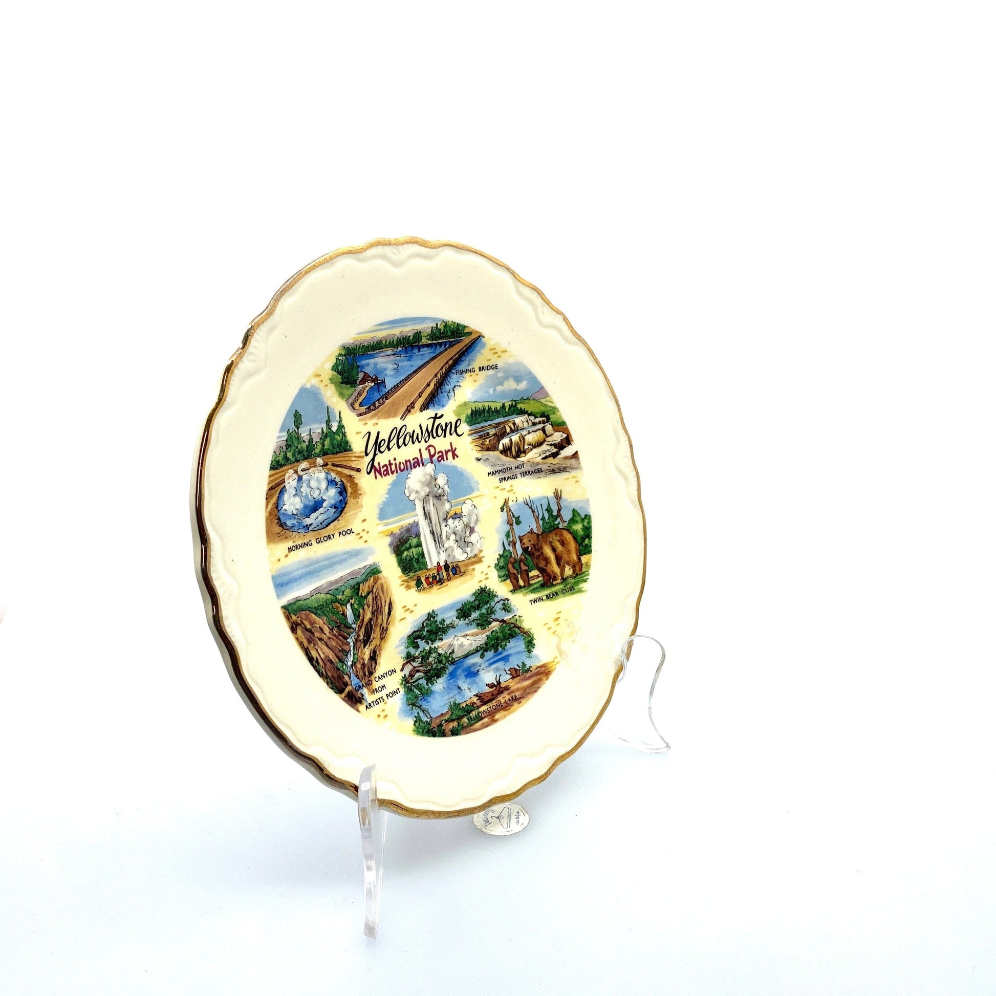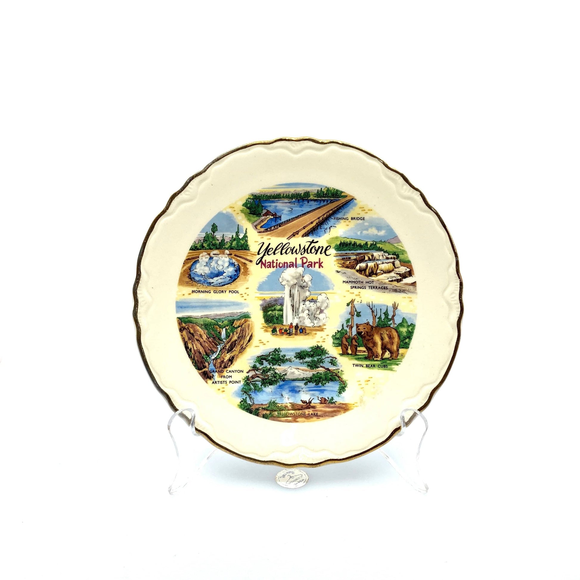 Vintage State Souvenir Plate “Yellowstone National Park” Collectible, White - 7.5”