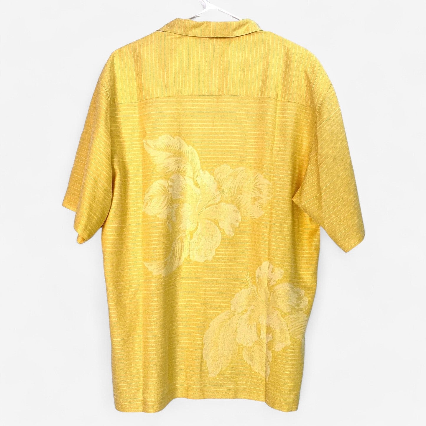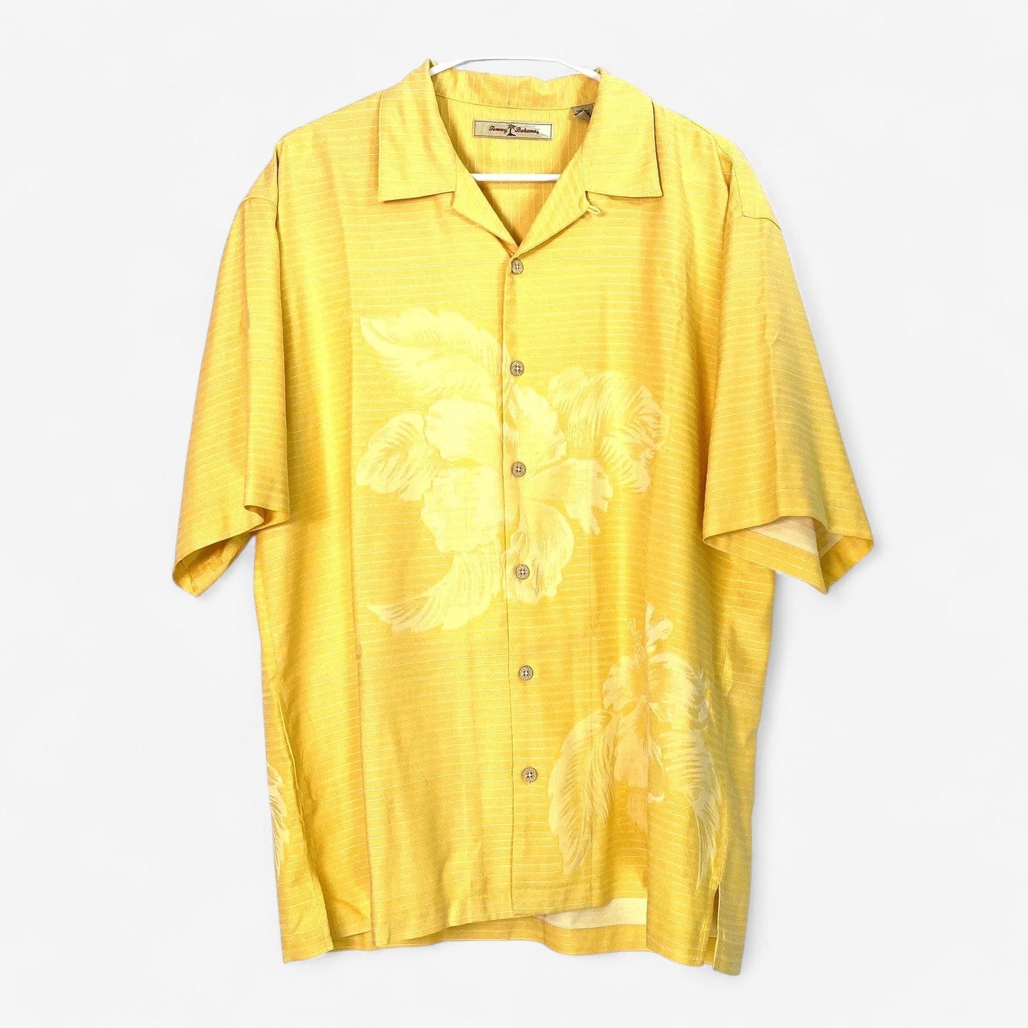 Embrace island-inspired style with this Vintage Tommy Bahama Men's Silk Hawaiian Shirt in a vibrant yellow hue. Perfect for casual outings or tropical getaways, this shirt offers both comfort and timeless fashion.