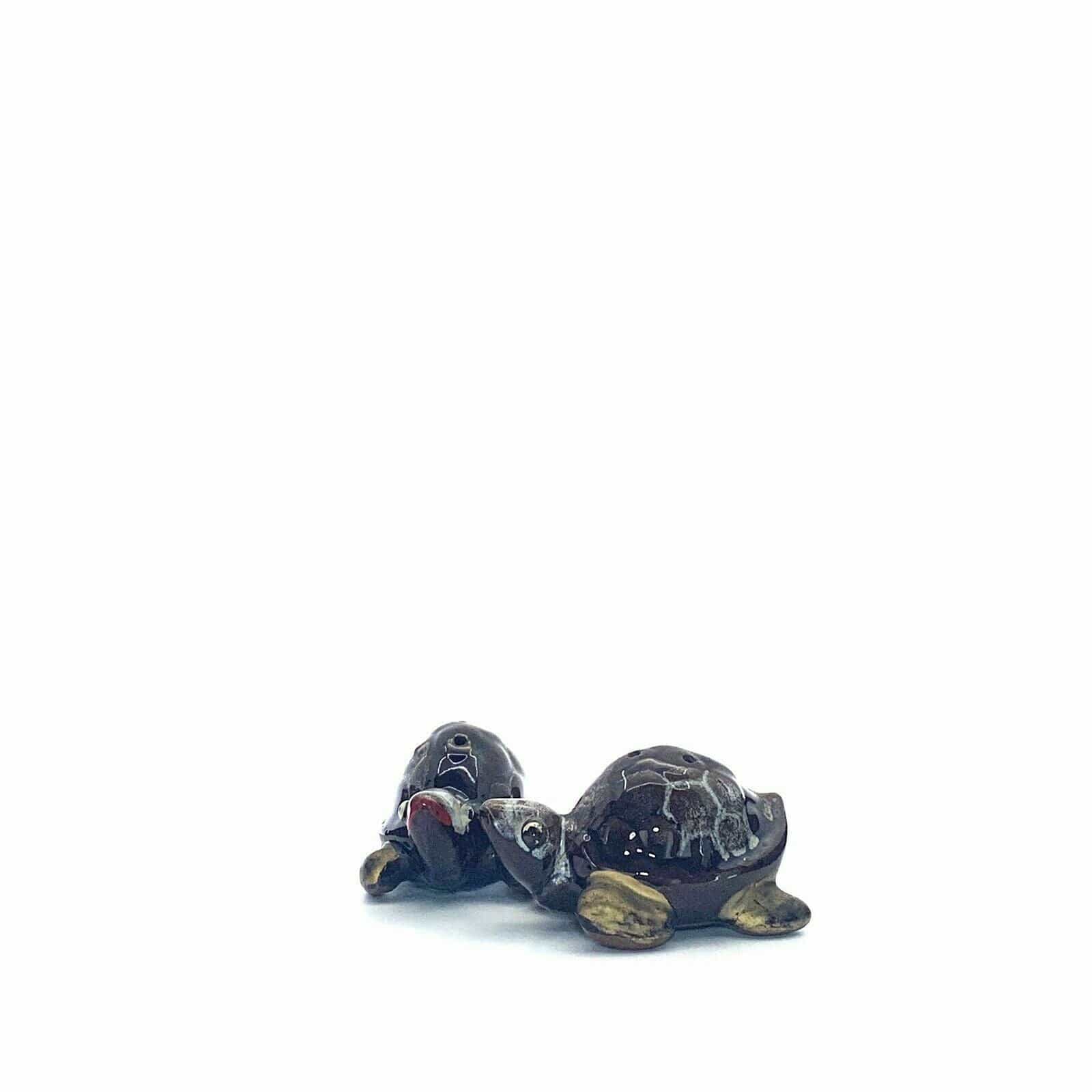 Vintage Turtle Tortoise Hand Paint Drip Glaze Salt & Pepper Shakers Set