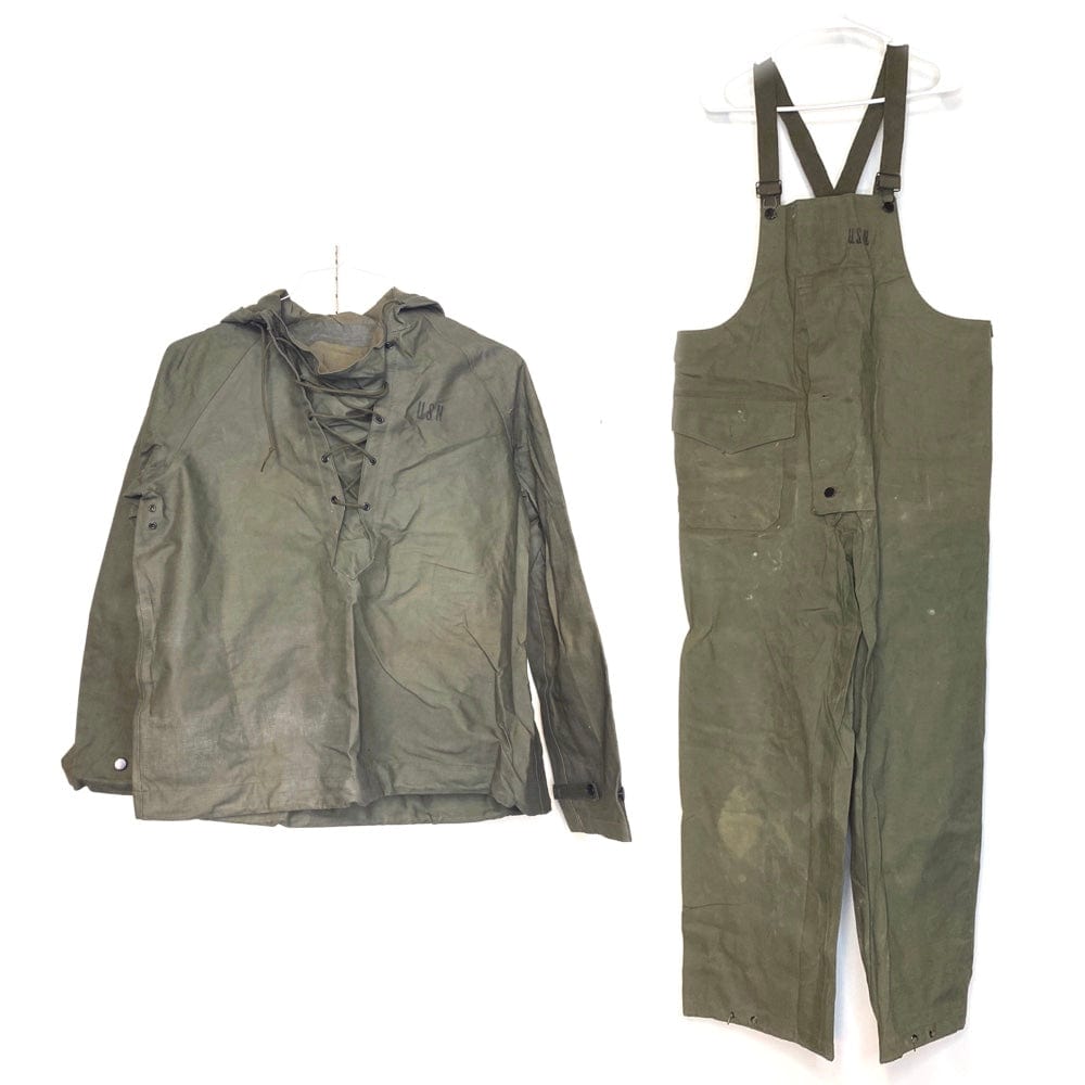 Vintage U.S. Navy Size S Green Foul Weather Deck Parka & Bib Overalls
