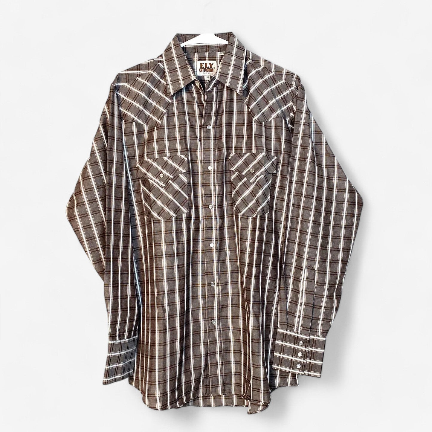 Embrace classic Western style with this Vintage Ely Cattleman Men's Gray Plaid Pearl Snap Shirt, a timeless addition to any wardrobe.