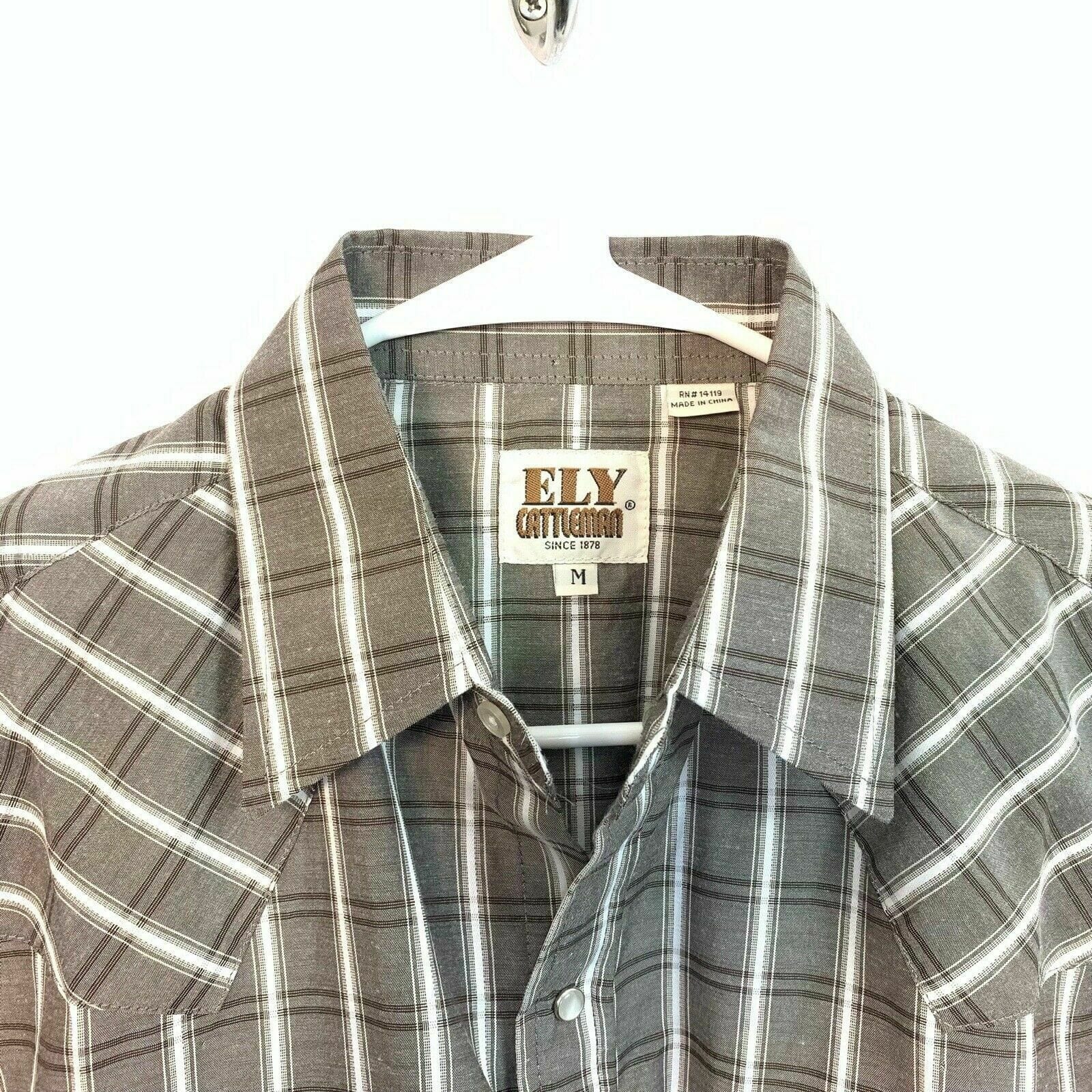 Vintage Ely Cattleman Men's Gray Plaid Western Pearl Snap Shirt - Size M - Long Sleeve