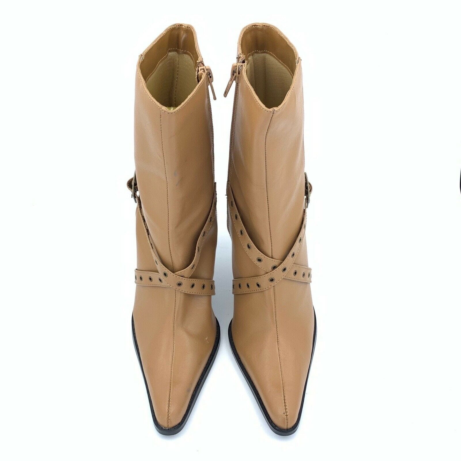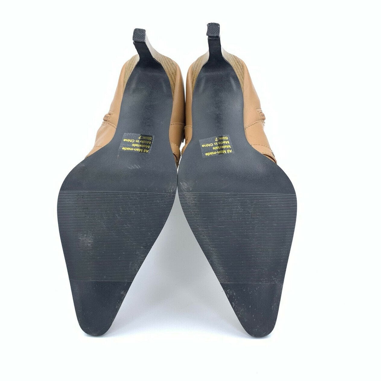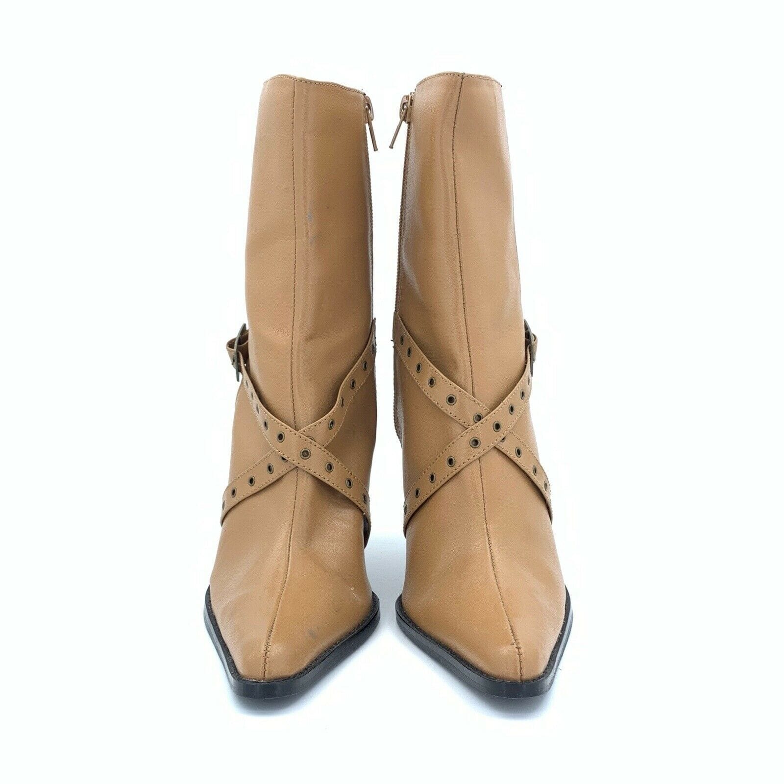 Wild Diva Womens Faux Leather Pointed Toe Zip-Up Boots, Beige - Size 7