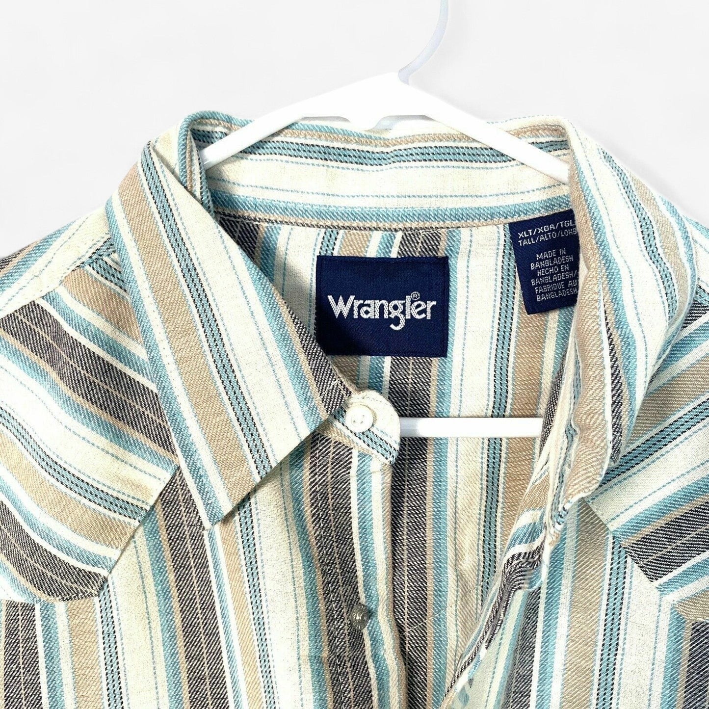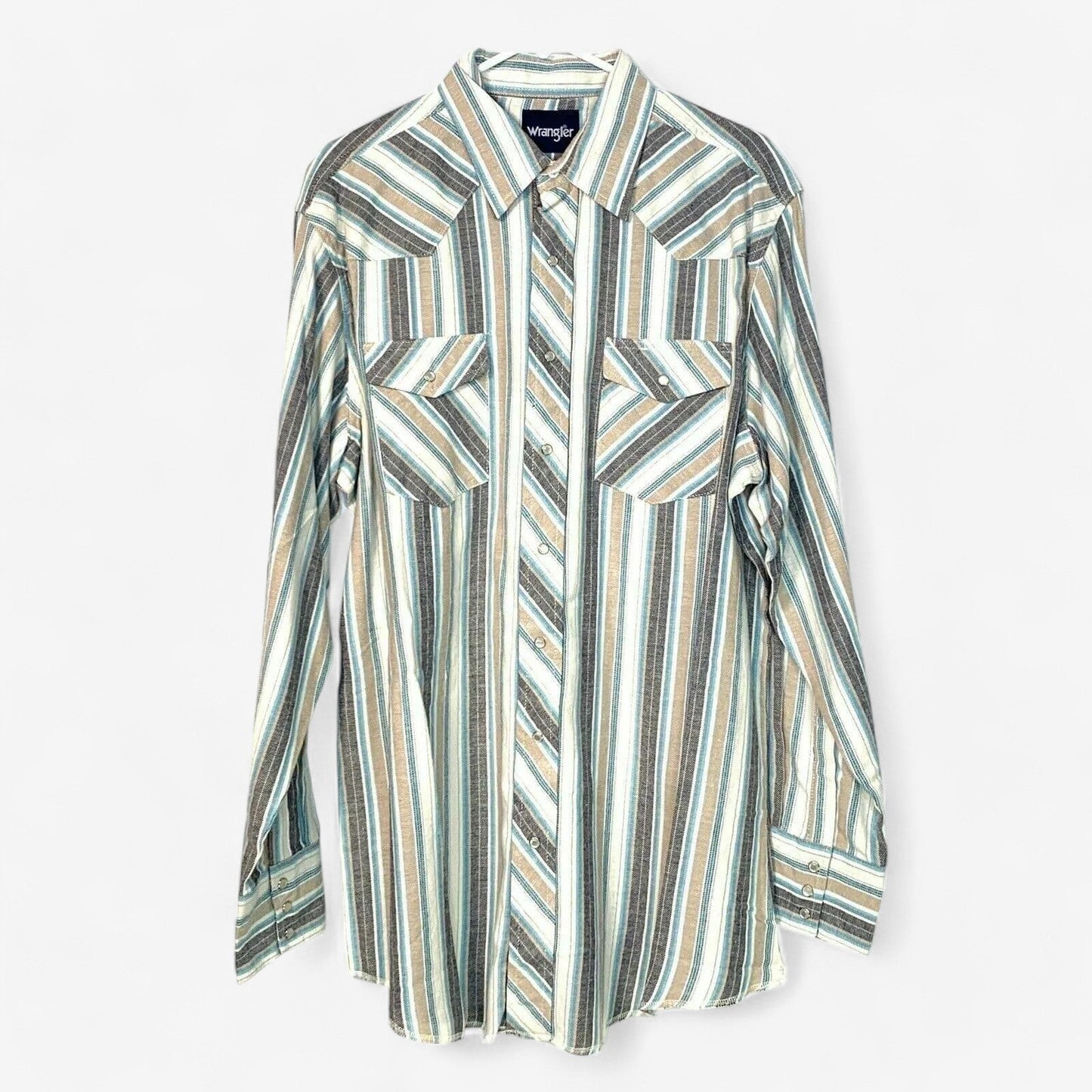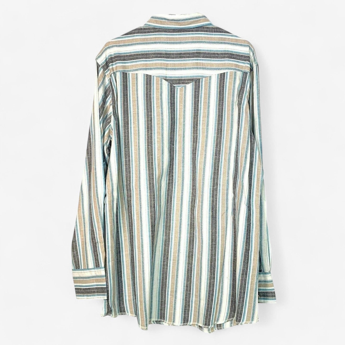 Wrangler Men's White Striped Western Flannel Snap-Up Shirt - Size XLT